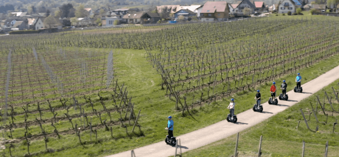 Deze segwayrit door de wijngaarden zal een ideale ervaring zijn voor wijnliefhebbers en avonturiers op zoek naar ontdekkingen. Het panoramische uitzicht over de vlakte van de Elzas zal je sprakeloos achterlaten, en voor nog meer plezier is een glas Crémant d’Alsace in de wijngaarden een optionele extra!