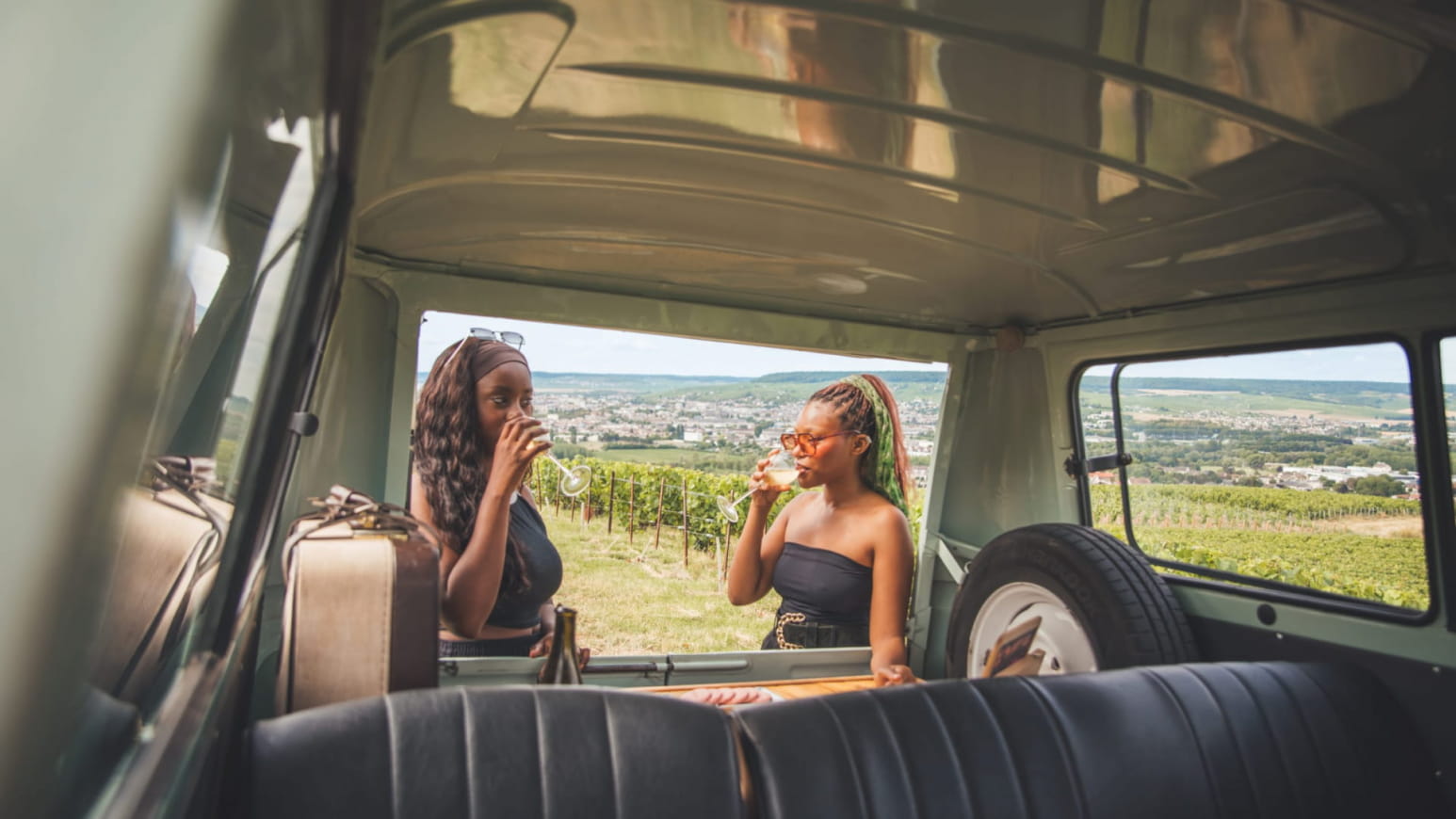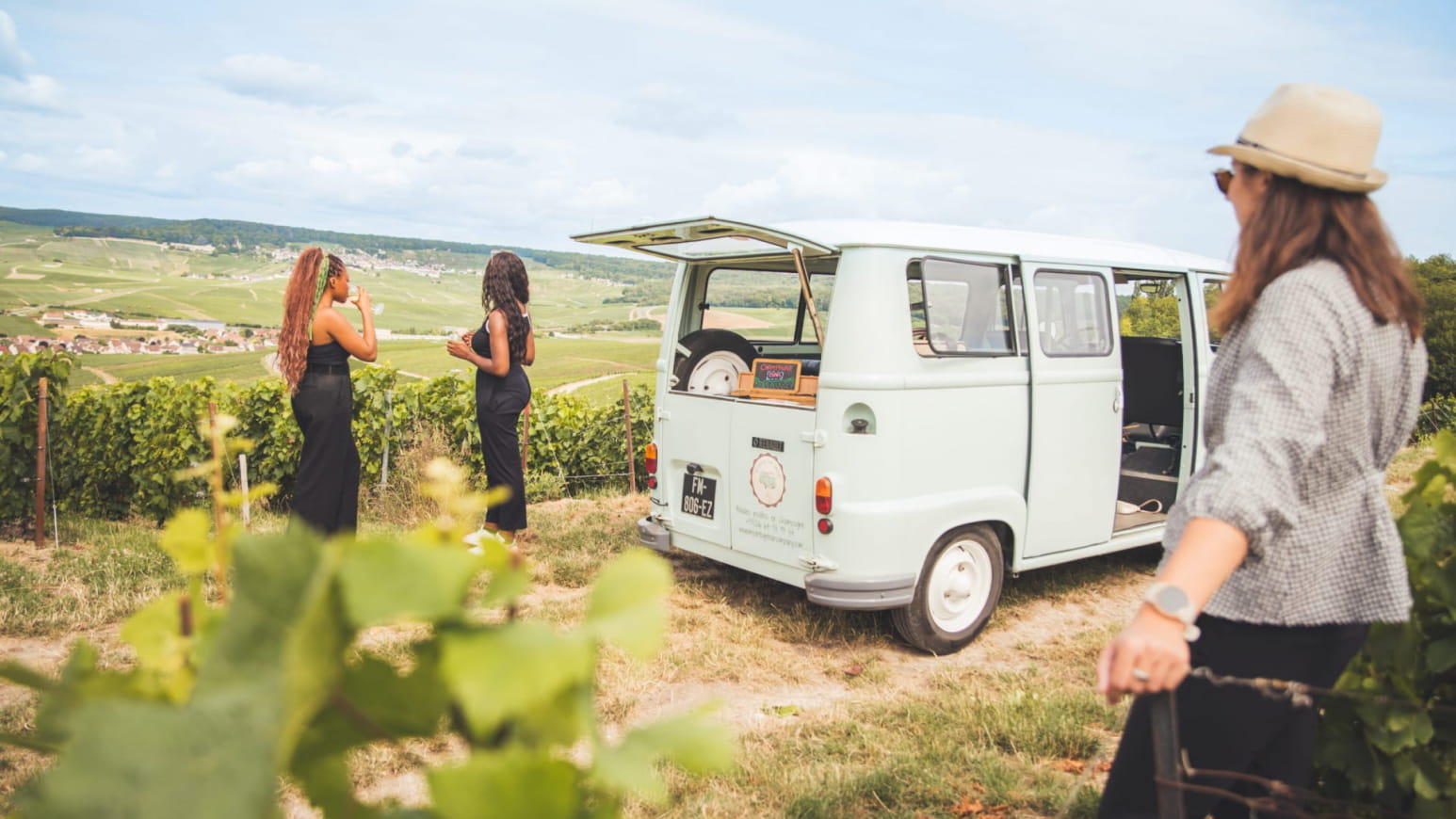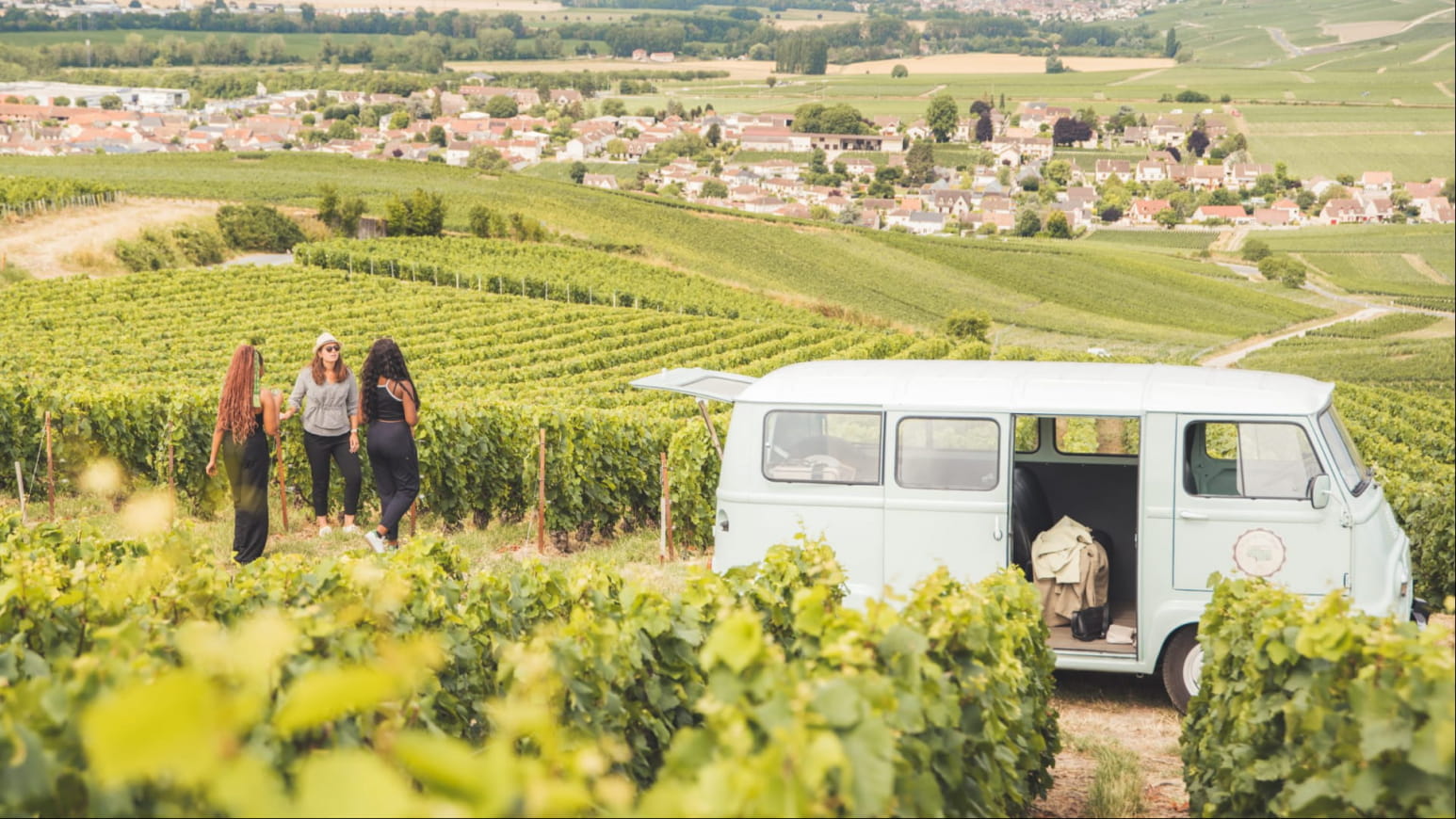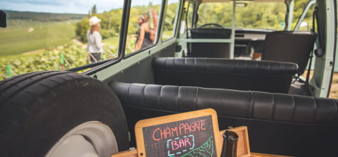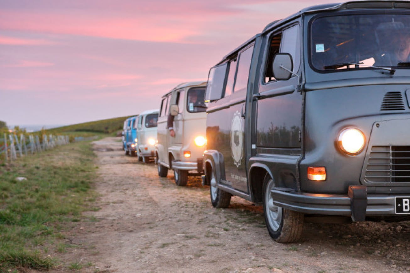 Het mozaïek van Champagne wijngaarden is een onvergetelijk gezicht, vooral bij zonsondergang! My Vintage Tour Company nodigt je uit voor een 2 uur durende escapade door dit pittoreske landschap, in een Renault Estafette Alouette bestuurd door een lokale gids.