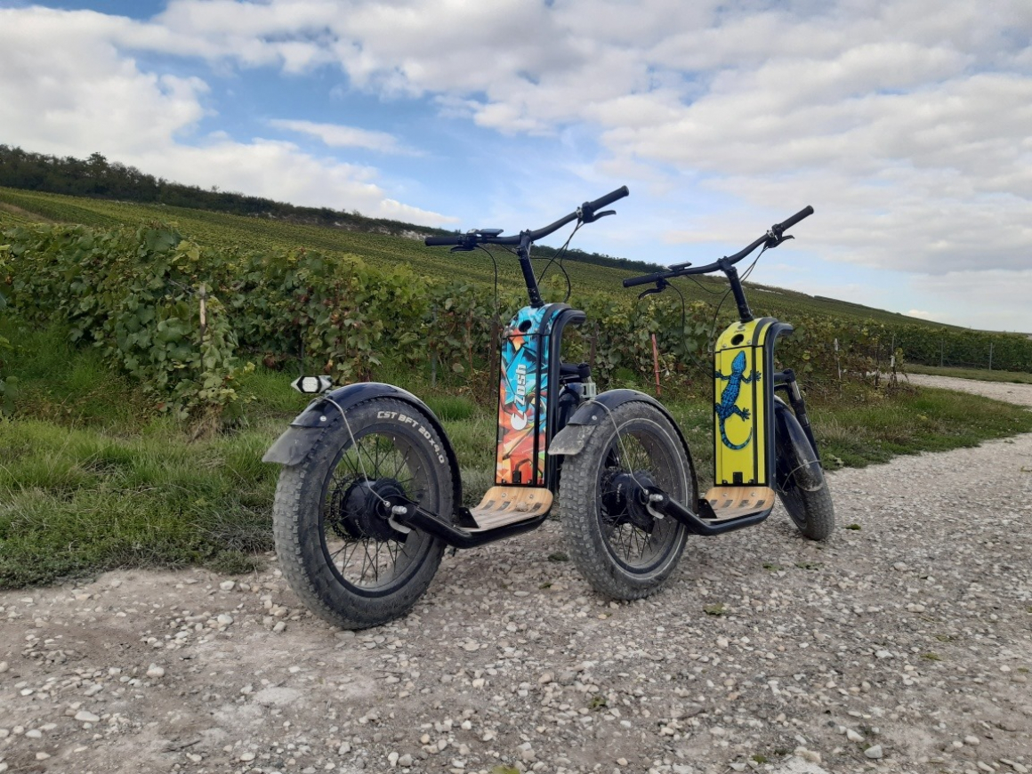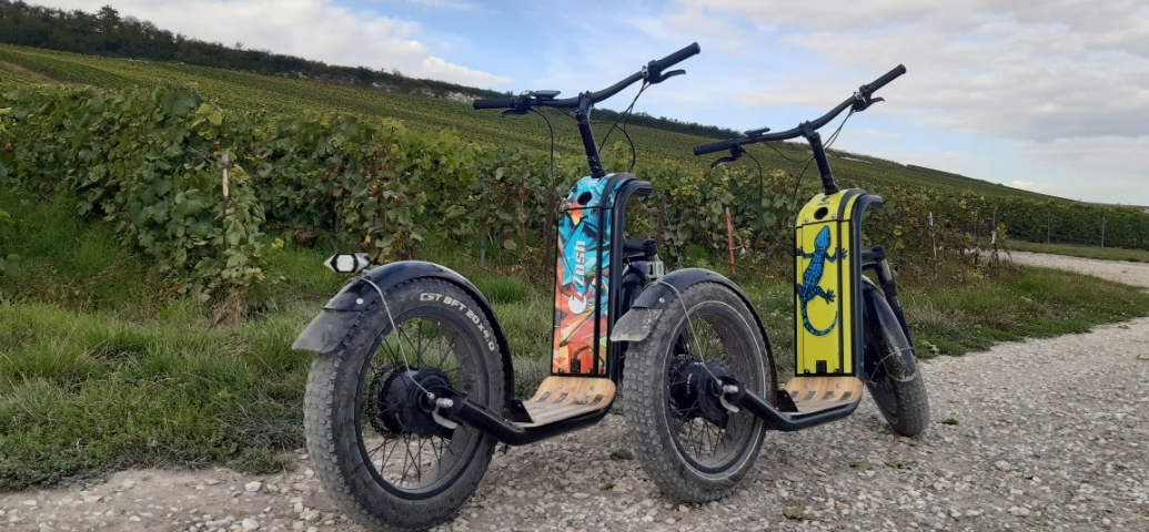 Verhuur van elektrische scooters voor elk terrein in de Champagne wijngaarden