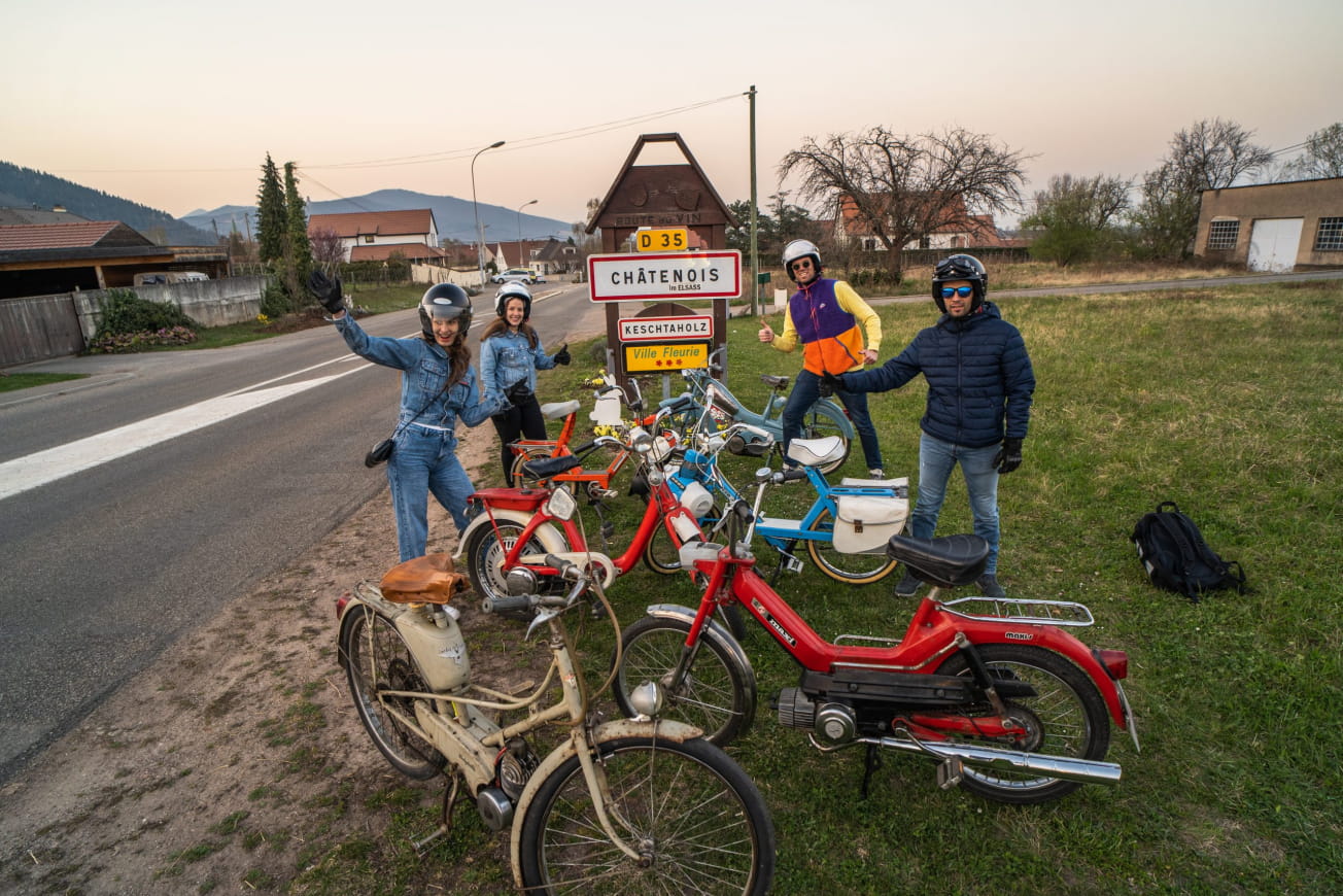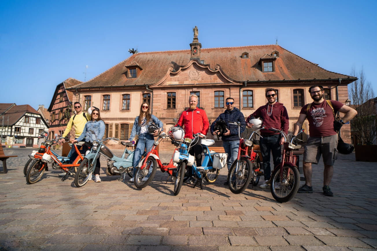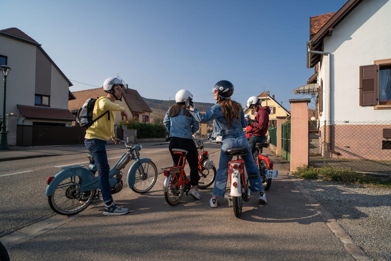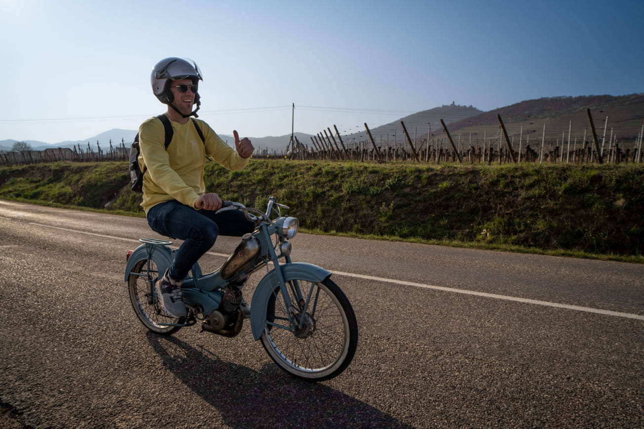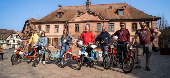 Op zoek naar een originele activiteit in de Elzas ? ✌ Ontdek met Papi's Bécanes vintage brommerritten uit de jaren 50, 60, 70 in het hart van de Elzasser wijngaarden ? Onze ritten voeren u door de Elzasser wijngaarden, de charmante Elzasser dorpjes en de kleine landweggetjes. Wij bieden stops aan bij onze lokale partners om te genieten van lokaal eten en drinken.
