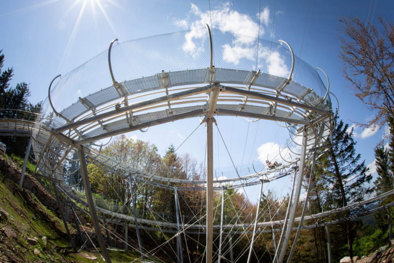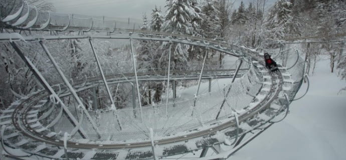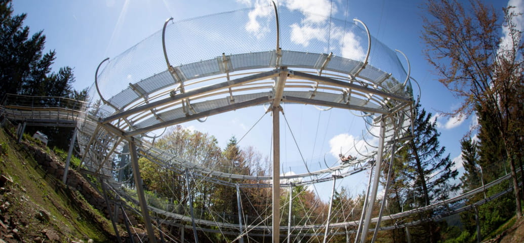 Ben je klaar voor alle sensatie? Dan kun je rekenen op ongeveer 7 minuten euforie. Maak het jezelf gemakkelijk en hou je goed vast, want de rodelrit naar beneden belooft... opwindend te worden! Tricky Track ligt op de top van de Col du Calvaire en is een rodelbaan voor 4 seizoenen met een afdaling van 700 meter, een hoogteverschil van 78 meter, een draai van 450 graden en een parcours dat wordt onderbroken door een tunnel, bochten, haarspeldbochten en loopbruggen.