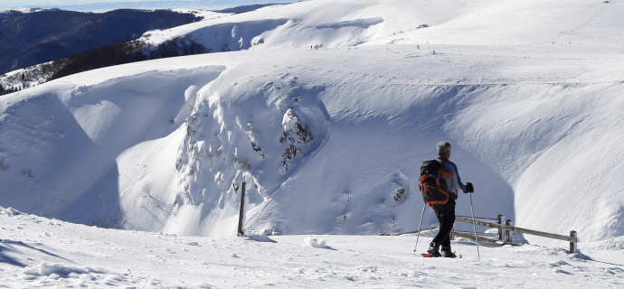 Vanaf de Col du Calvaire leiden je stappen je naar het Lac Blanc. Onder begeleiding van een professionele berggids reis je door prachtige besneeuwde landschappen die worden versterkt door de glinsterende tinten van de zonsondergang. Verken majestueuze beukenbossen en geïsoleerde beuken- en sparrenbossen en bewonder adembenemende panorama’s onder de sterrenhemel. Het smetteloze wit van de winter voegt een magisch tintje toe aan dit ongerepte natuurlijke erfgoed, waardoor je wandeling nog betoverender wordt.