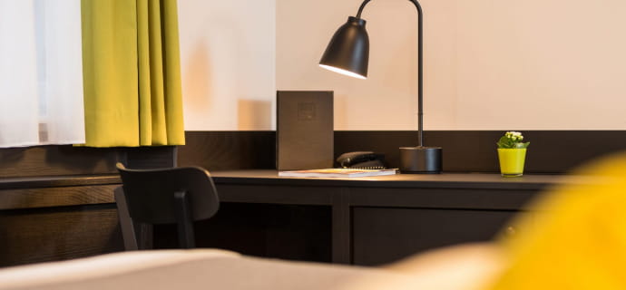 Met een oppervlakte van 18 m² en een elegante, trendy inrichting straalt je kamer een warme sfeer uit. Natuurlijk is comfort gegarandeerd met de nieuwste technologie, waaronder gratis Wi-Fi.