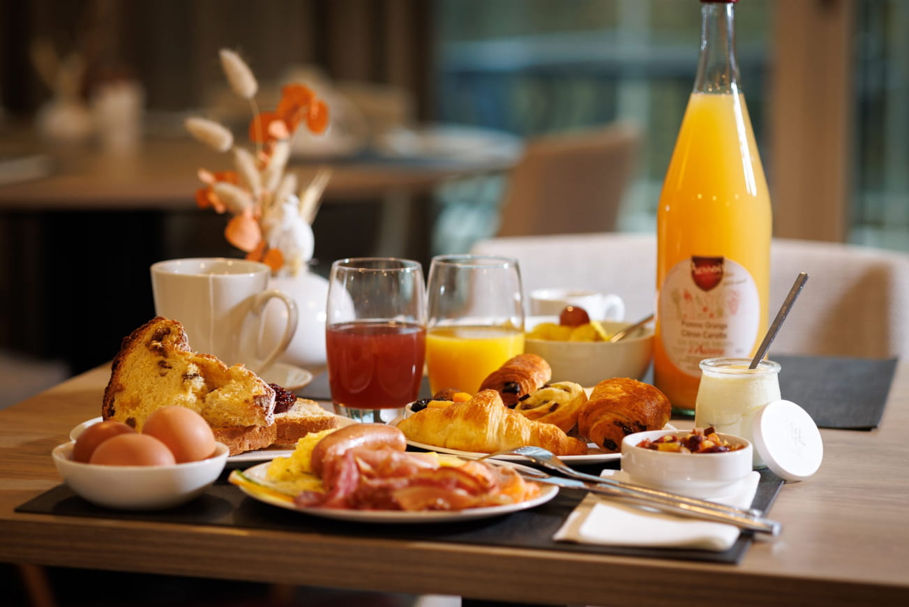Om uw smaakpapillen te bevredigen, omvat het arrangement ook een bistronomisch diner in het restaurant « Bain de forêt ». Chef-kok Edouard Lienhart laat je kennismaken met zijn culinaire kunsten aan de hand van een 3-gangen à la carte menu, waarbij hij lokale smaken combineert met een vleugje inventiviteit. Deze proefervaring gaat ‘s ochtends verder met een all-you-can-eat ontbijtbuffet. Zoet, hartig, warm of koud… je zult een veelheid aan lekkernijen vinden om de dag energiek en verwend te beginnen!