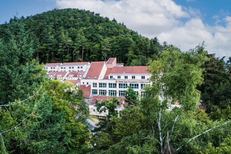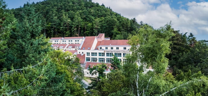 Het 4-sterren wellnesshotel Husseren Collections, genesteld op een berghelling bovenaan de Elzasser wijnroute, verwelkomt je in een natuurlijke omgeving. Het hotel ligt op een steenworp afstand van Eguisheim en Colmar en heeft 74 ruime kamers en suites. Het hotel beschikt over een bistronomisch restaurant "Bain de Forêt", een bar die uitkomt op een terras op het zuiden, een spa van 450 m2 met een zintuigenzwembad, gezichts- en lichaamsbehandelingen, een hightech fitnessruimte, drie seminarruimten uitgerust met de nieuwste technologie en een overdekte speelruimte voor kinderen.