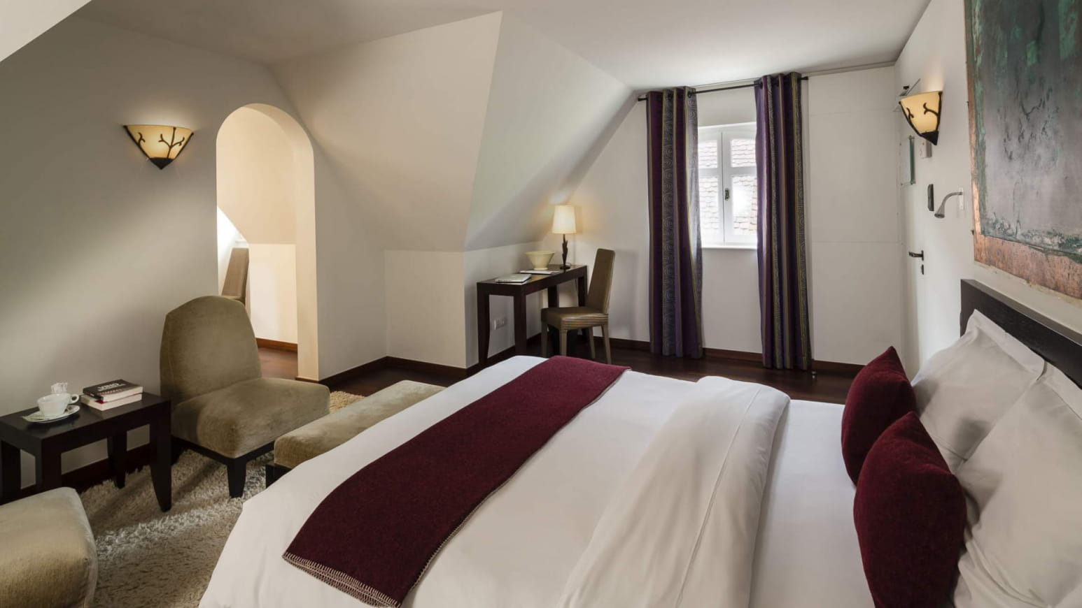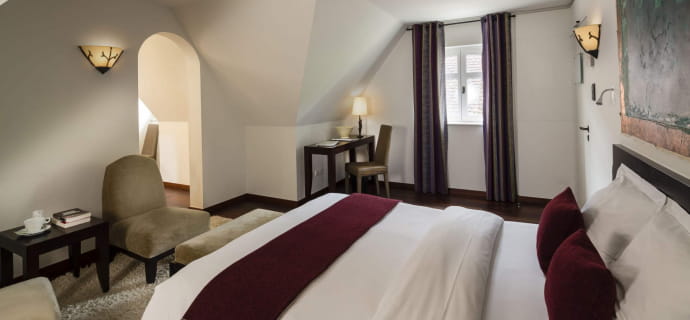 Tijdens je verblijf word je verwelkomd in een Élégance-kamer voor een gezellige avond voor 2. Je avond wordt bekroond met een gastronomisch 3-gangendiner, vergezeld van een glas champagne, een wijn-spijscombinatie, mineraalwater en koffie. Word wakker met een continentaal ontbijt om de dag goed te beginnen.