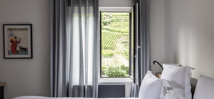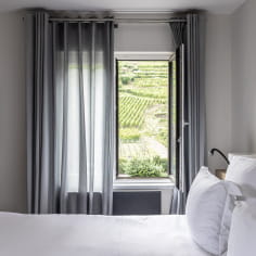 Confort, sérénité et élégance sont au rendez-vous. Derrière les fenêtres, les vignobles et coteaux offrent un décor changeant, propice à l’émerveillement. À l’intérieur, l’espace, le calme et le raffinement créent un environnement idéal pour un séjour placé sous le signe du bien-être.
