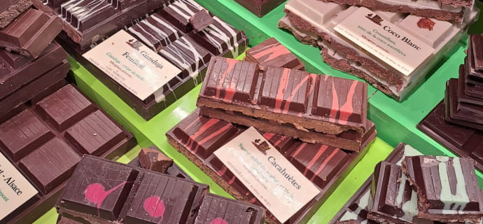 - Dégustation de 3 demi macarons et 3 chocolats chez Jacques Bockel