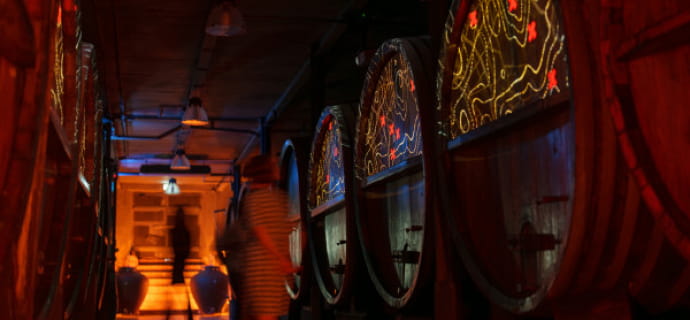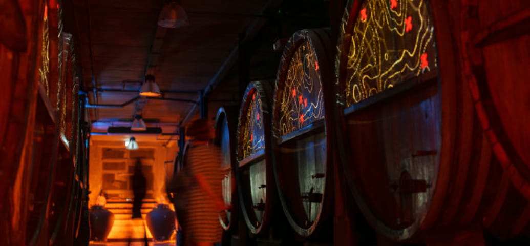 - Visite de la cave immersive avec projection à 180° sur fûts.