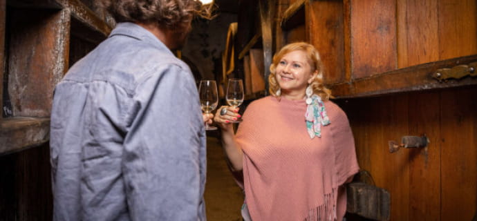 Une fois au domaine, il vous conduira 7 mètres sous terre, dans la fameuse Cave de l’enfer. En descendant les escaliers, vous arriverez dans de jolies caves voûtées qui ont servi à abriter les habitants pendant la Deuxième Guerre Mondiale. Dans ce lieu chargé d’histoire, au milieu de 45 foudres en chêne centenaires, Francis vous proposera une dégustation à la chandelle. Vivez une dégustation d’exception dans cette ambiance et ce lieu chargé d’histoire.