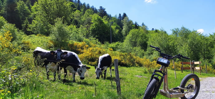 Prenez de l'altitude et profitez du silence de la mobilité douce (maximum 25km/h) sur des parcours ludiques, adaptés aux saisons et à la biodiversité, et prenez le temps de contempler les paysages vosgiens.