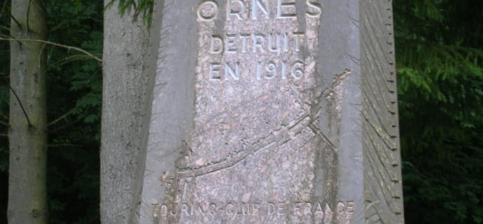 Plus au Nord, à Ville devant Chaumont et à quelques pas du front, vous découvrirez l’une des 30 nécropoles allemandes du département. La visite du Champ de Bataille se poursuivra au cœur des ruines du village de Ornes, au pied des colonnes miraculées d’une église romane et c’est là que la visite s’achèvera !
