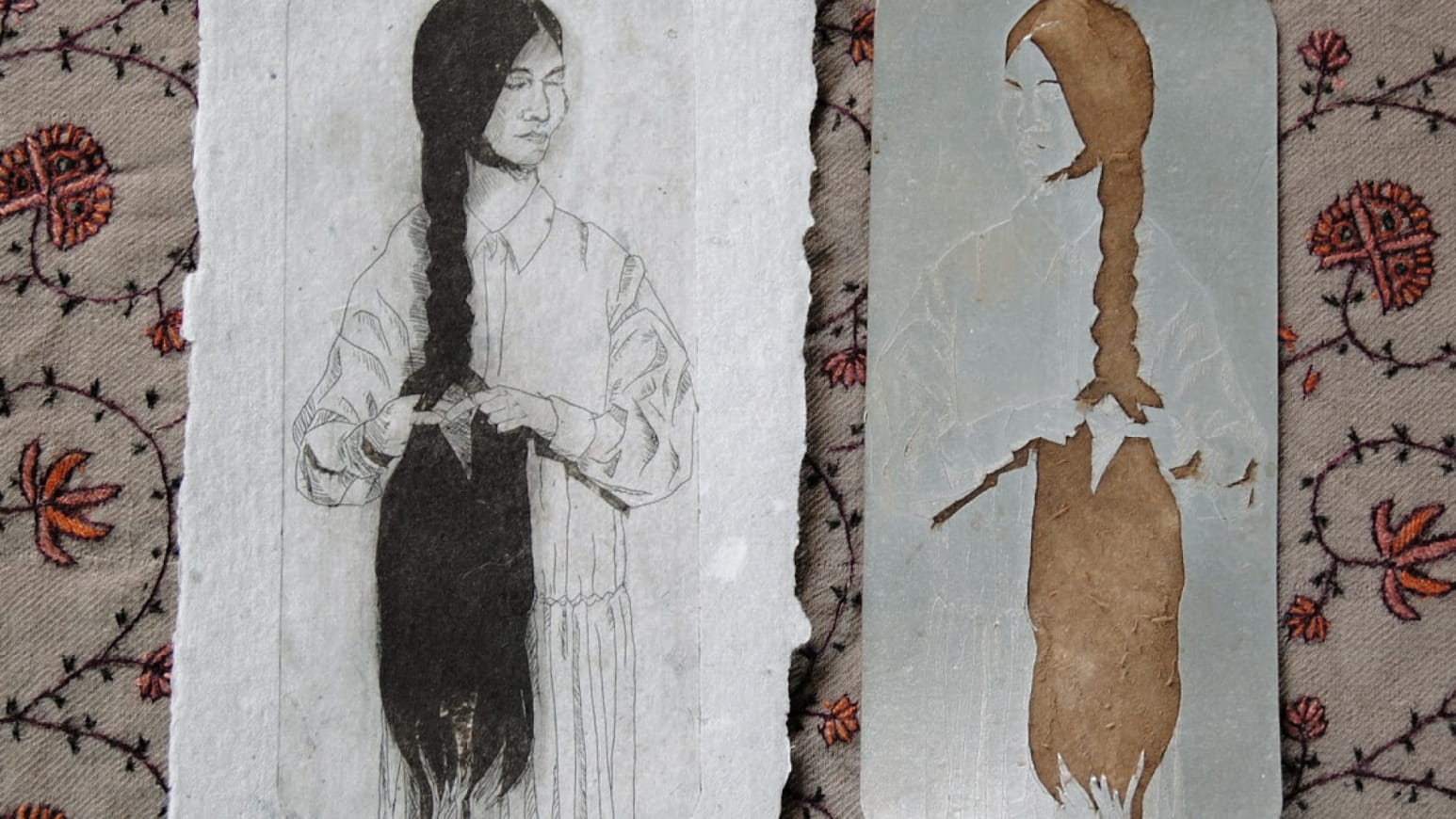 Je suis passionnée par les matières naturelles comme le coton, la laine, le lin et la soie. Les arts textiles traditionnels, surtout ceux d'Orient, les motifs anciens, les couleurs vives, et le papier artisanal me fascinent. J'aime le papier sous toutes ses formes, chaque technique est pour moi un moyen d'explorer et d'exprimer la richesse et la diversité de cet incroyable matériau.