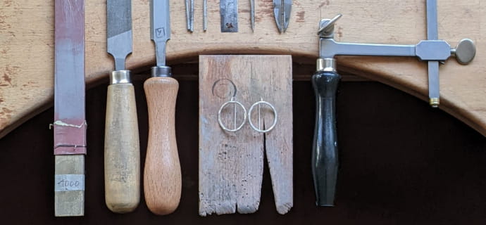 Cet atelier vous permettra de réaliser un bijou en argent : une bague, des boucles d’oreilles ou un pendentif. Pas à pas, Yvanne Laurent vous guidera dans chaque étape de fabrication, du dessin initial au polissage final. Vous apprendrez à manipuler les outils traditionnels : scie à main, limes aiguilles, chalumeau et bien plus encore.