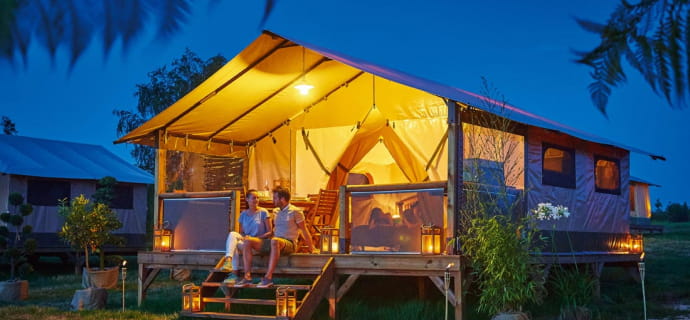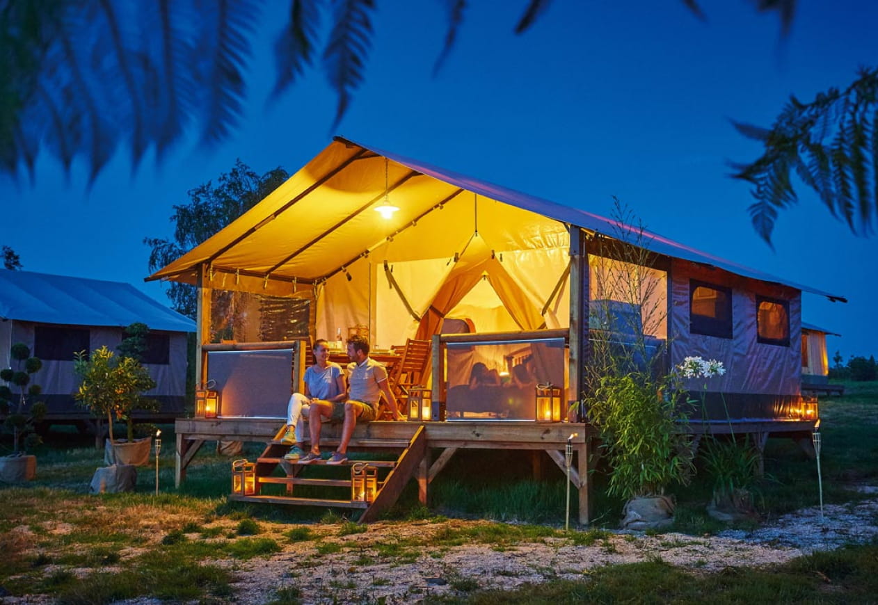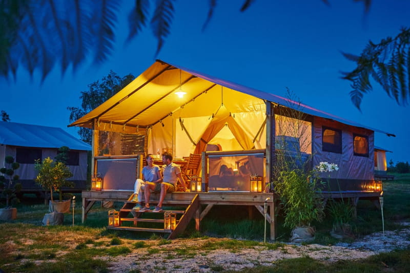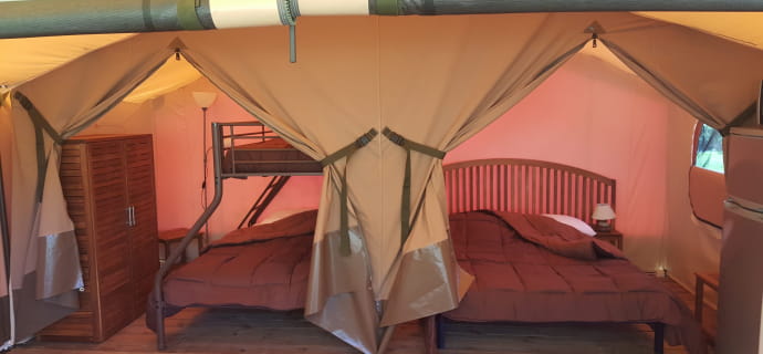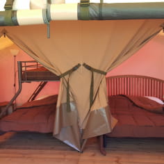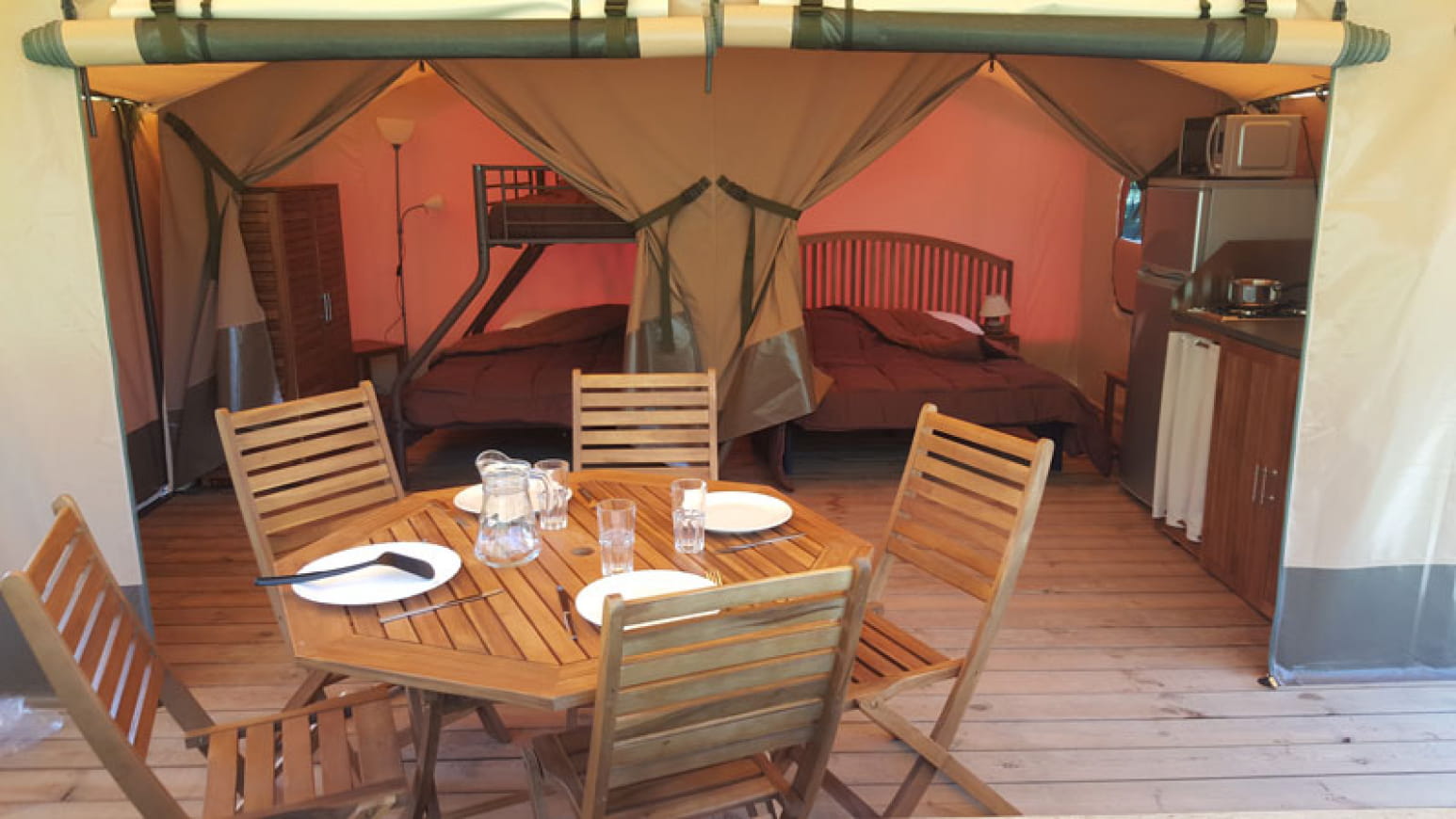 - Hébergement en dur mais qui garde l’esprit camping grâce à sa toile