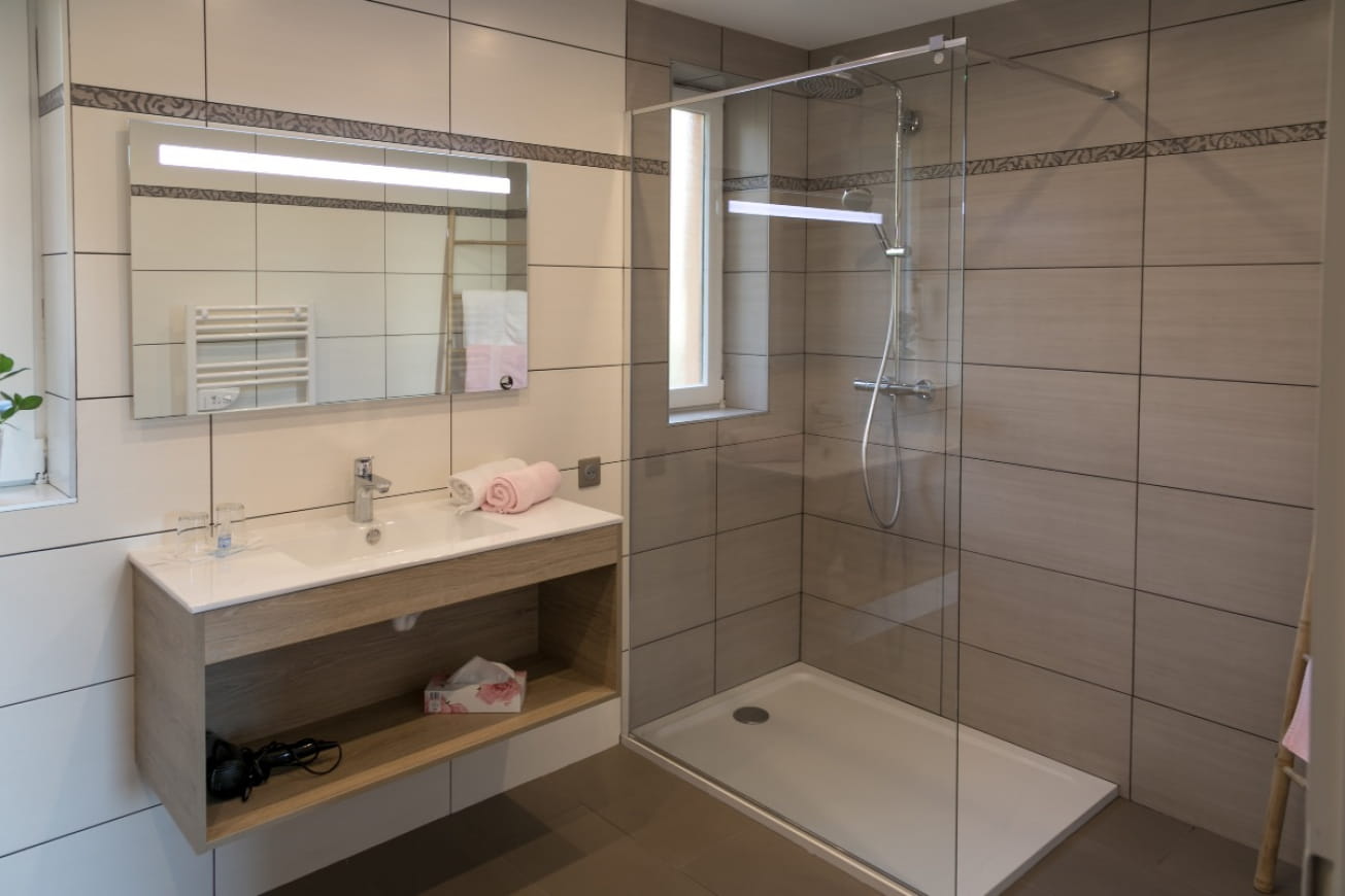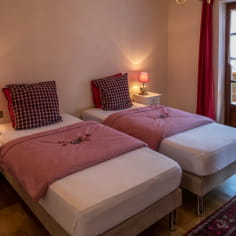 Vous séjournerez dans la chambre Cœur d’Alsace située au rez-de-chaussée de la maison, avec terrasse privative. Salle de bains privée avec wc, lit modulable en double 200X200 ou lits jumeaux 100X200.