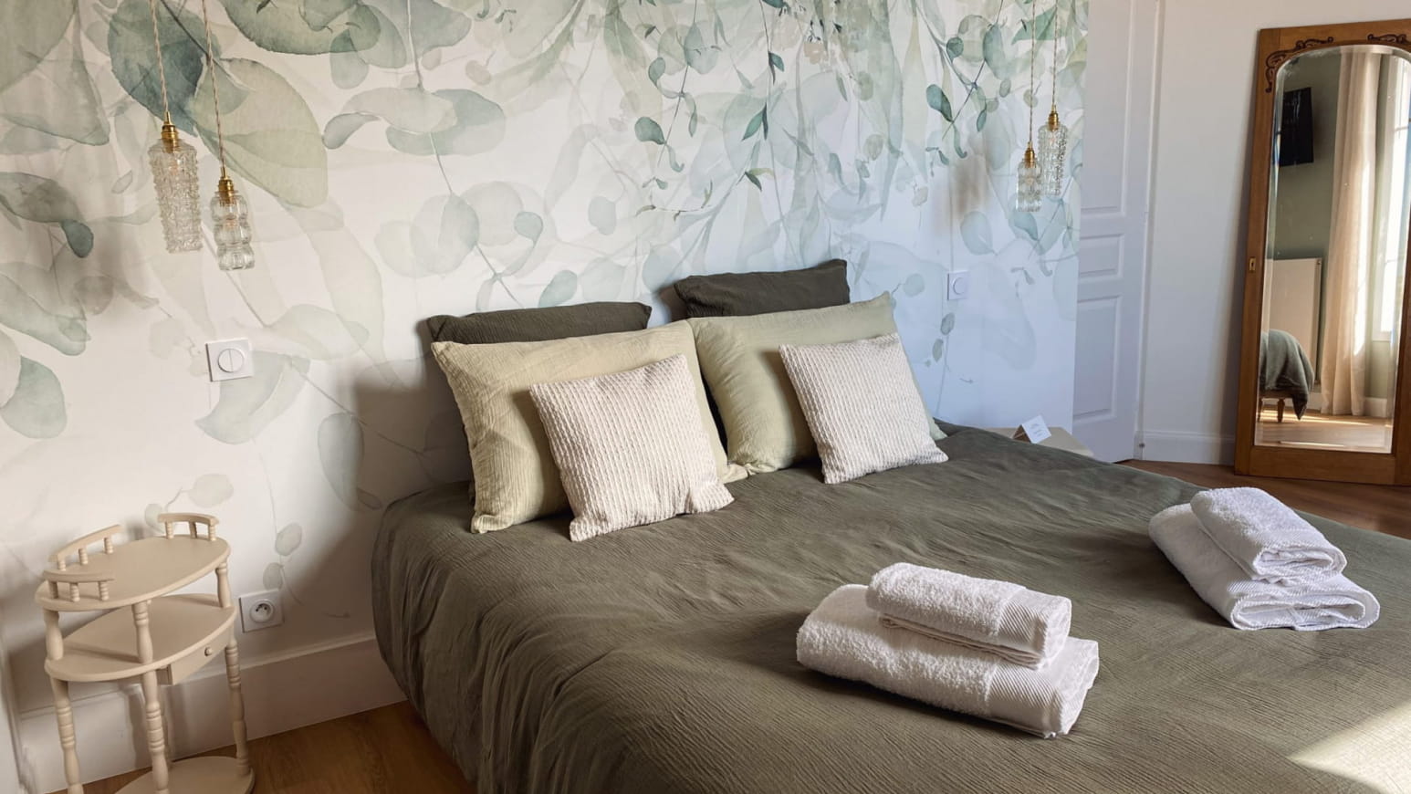 Quatre chambres spacieuses avec salle d’eau et wc privatifs, literie confort hôtellerie.