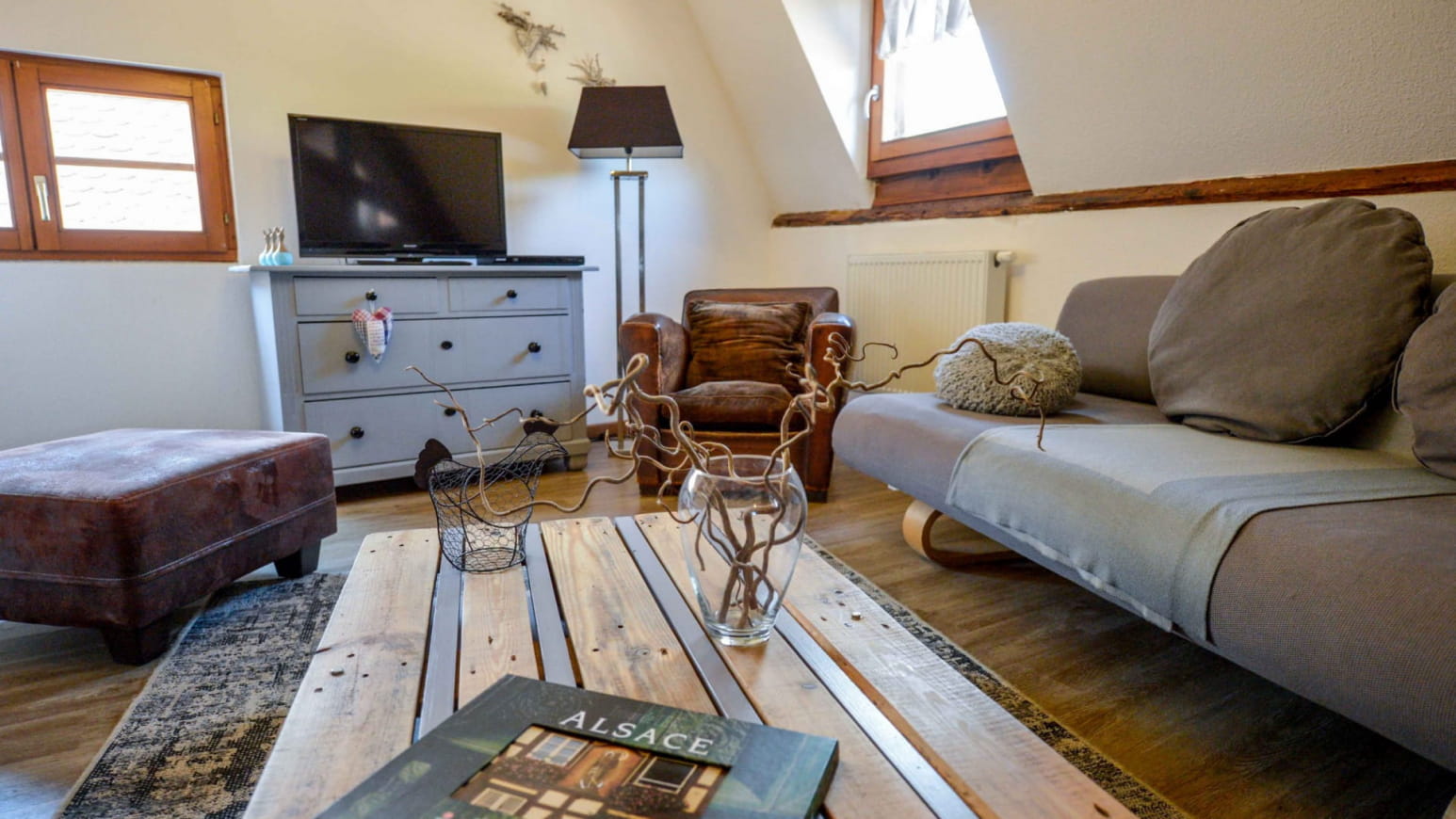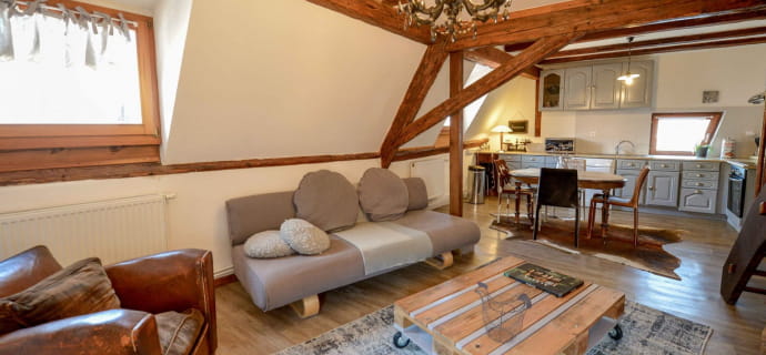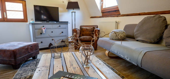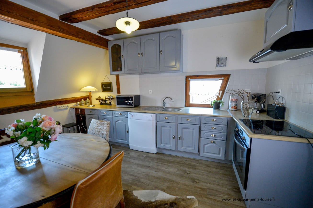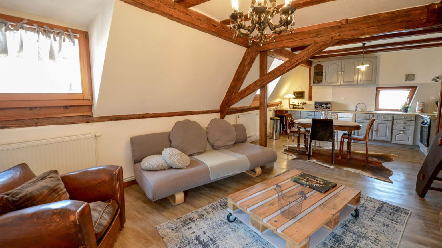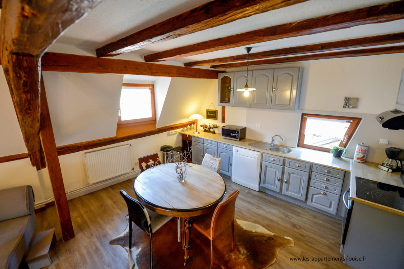 Découvrez le charme de l’Alsace en séjournant dans le gîte Les Géraniums des Appartements de Louise. Situé au cœur de Riquewihr, cet appartement mansardé vous invite à une immersion totale dans un village pittoresque Alsacien. Niché au 3ème étage d’une maison du 17ème siècle, bien que rénovée pour offrir tout le confort moderne, conserve son charme d’antan.