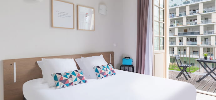 Du studio cosy pour 2 personnes à l’appartement 2 pièces pouvant accueillir jusqu’à 5 personnes, chaque logement est élégant, lumineux et parfaitement équipé. Literie haut de gamme, cuisine complète avec micro-ondes, plaques, réfrigérateur et lave-vaisselle, tout est pensé pour votre autonomie. Les appartements offrent aussi un salon avec canapé convertible, idéal pour se détendre après vos visites.