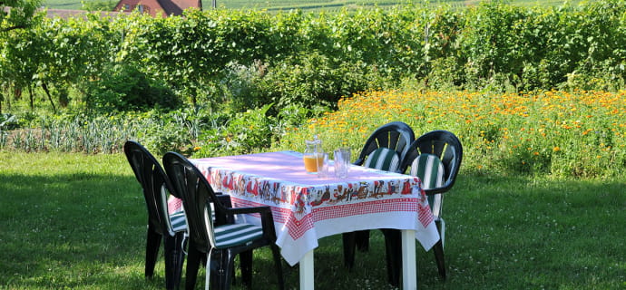 La maison est érigée au beau milieu d’un domaine viticole pour permettre aux locataires d’aller à la rencontre des vignerons et d’apprécier leur savoir-faire. De plus, vous occuperez le 2e étage de la maison des propriétaires afin de mieux admirer le panorama. En ouvrant les fenêtres, vous bénéficierez d’un océan de verdure à perte de vue et vous vous laisserez rêver face à ce paysage époustouflant. L’espace est généreux, car vous serez 4 à partager une superficie de 100 m2. Le gîte comprend 2 pièces pour des moments de convivialité et 2 chambres pour respecter votre intimité.