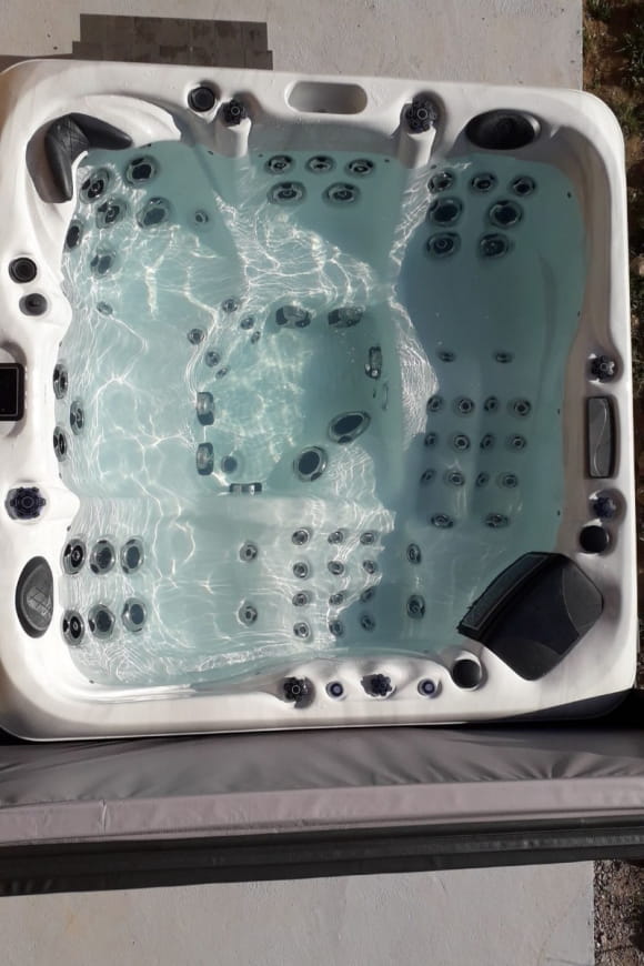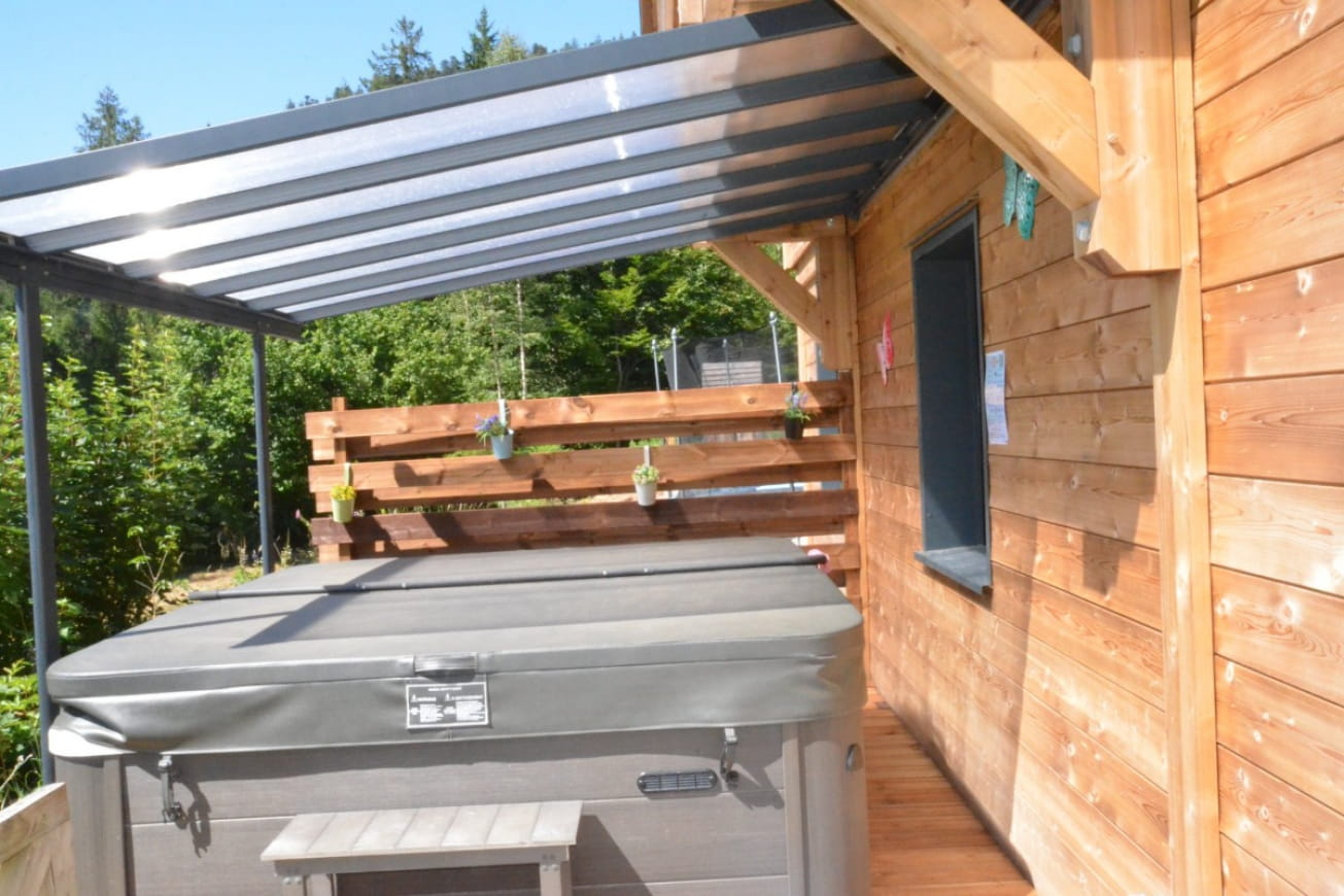 A l’extérieur vous pourrez vous détendre sur la terrasse avec spa privatif abrité, (salon de jardin, transats, barbecue) ou dans le grand jardin.