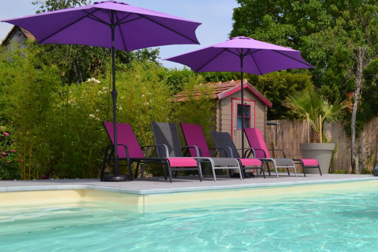 A l’extérieur, vous avez accès à un grand jardin fleuri avec piscine partagée et chauffée.