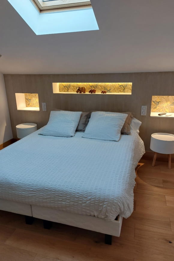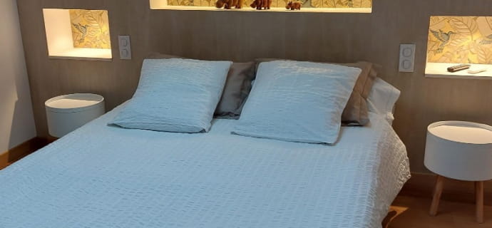 La location comprend à l’étage 2 chambres avec TV, toilettes indépendantes.