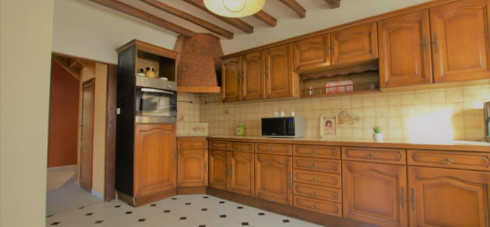 Au rez-de-chaussée, vous trouverez un spacieux salon, une cuisine équipée ouverte sur la salle à manger, une salle d’eau avec douche, vasque, WC et buanderie. Al’étage, vous disposerez d’une chambre double avec un lit de 140×190, d’une chambre « enfants » avec 2 lits superposés 90×190, d’une chambre double (lit 140×190), d’un WC avec lave-mains et d’une suite parentale avec lit 140×190 et salle d’eau (douche + vasque +1 wc).
