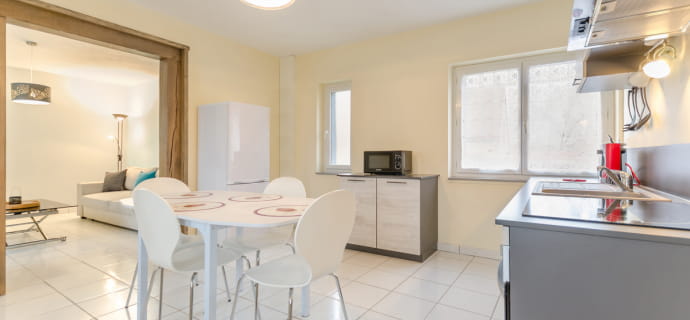 A l’extérieur, vous aurez à disposition un garage fermé, un terrain clos (pelouse + gravillons) de 500 m², un salon de jardin, un parasol et un barbecue. Les lits seront faits à votre arrivée, le linge de toilette et de maison sera fourni et le ménage fin de séjour pour un montant de 40€, le wifi (fibre), le ménage de fin de séjour, le chauffage et l’électricité seront inclus dans le prix du séjour.