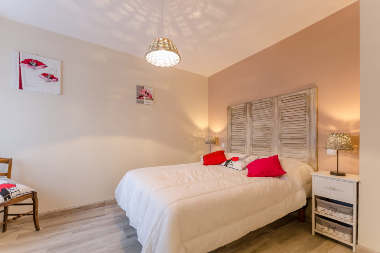 Cette maison indépendante et de plein pied dispose d’une cuisine équipée avec espace repas, un salon avec canapé convertible ( couchage 145×200), TV écran plat, une chambre avec lit double (140×200), une salle d’eau avec grande douche à l’italienne, un WC indépendant avec lave-mains.