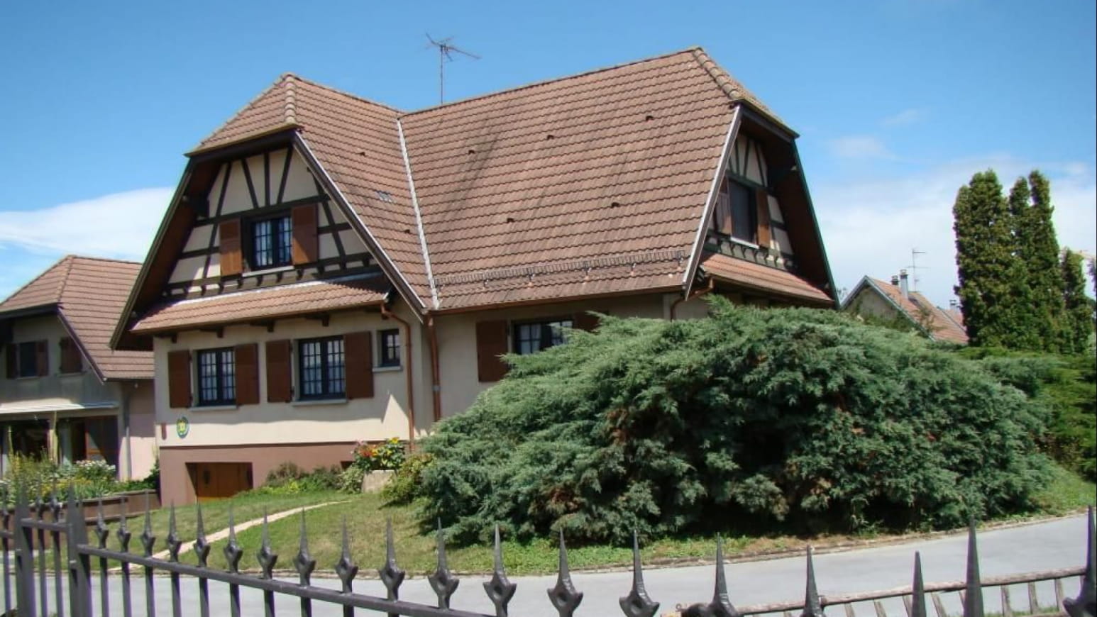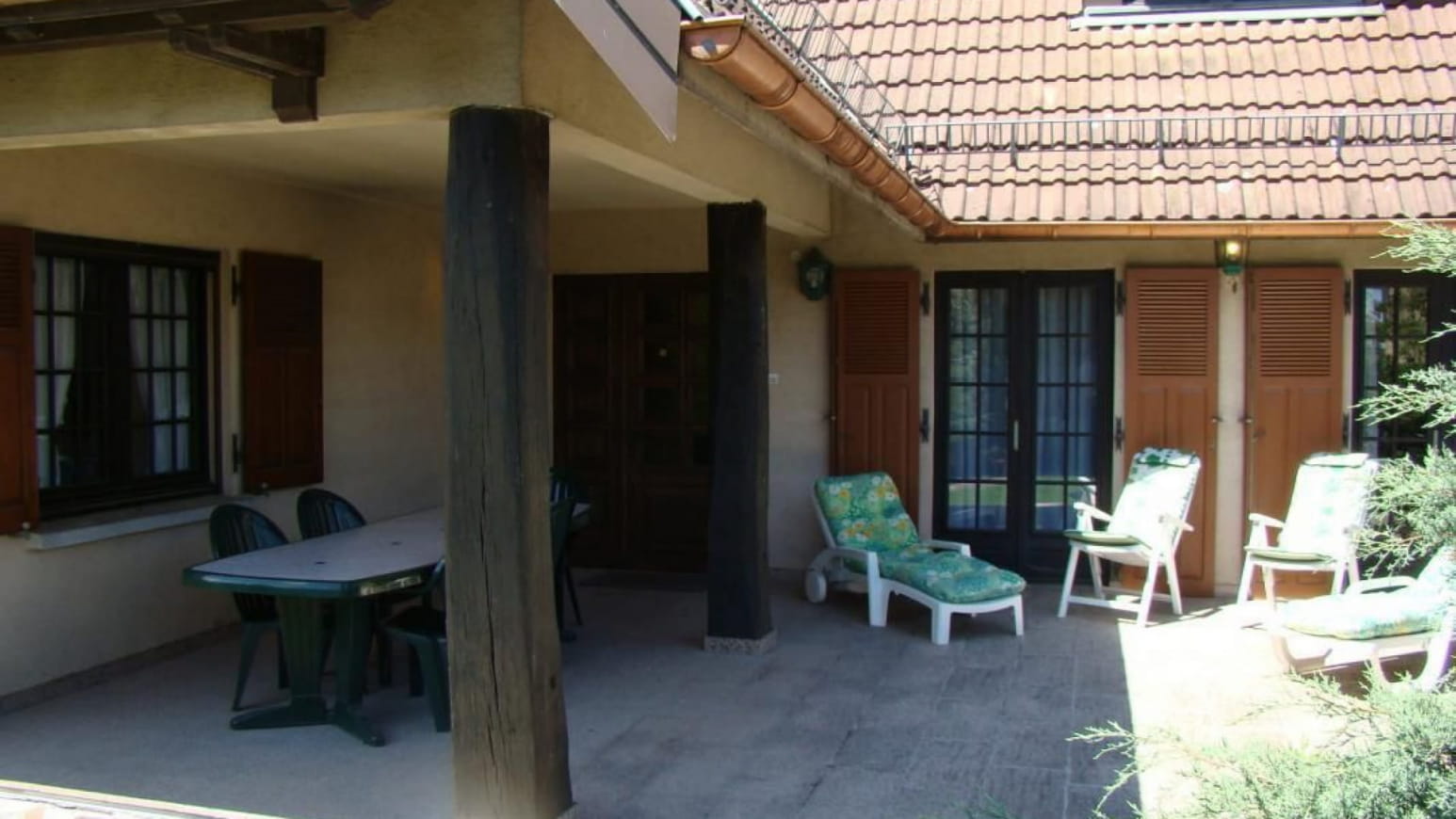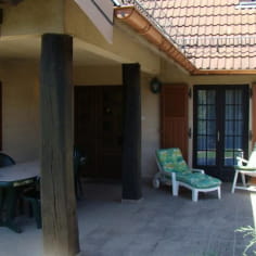 2 chambres (1 lit de 2 personnes et 2 lits de 1 personne). A l’étage, 4 chambres (3 lits 2 personnes, 2 lits 1 personne), salle de bain et wc indépendant. Grande terrasse, salon de jardin, barbecue, garage 3 véhicules.
