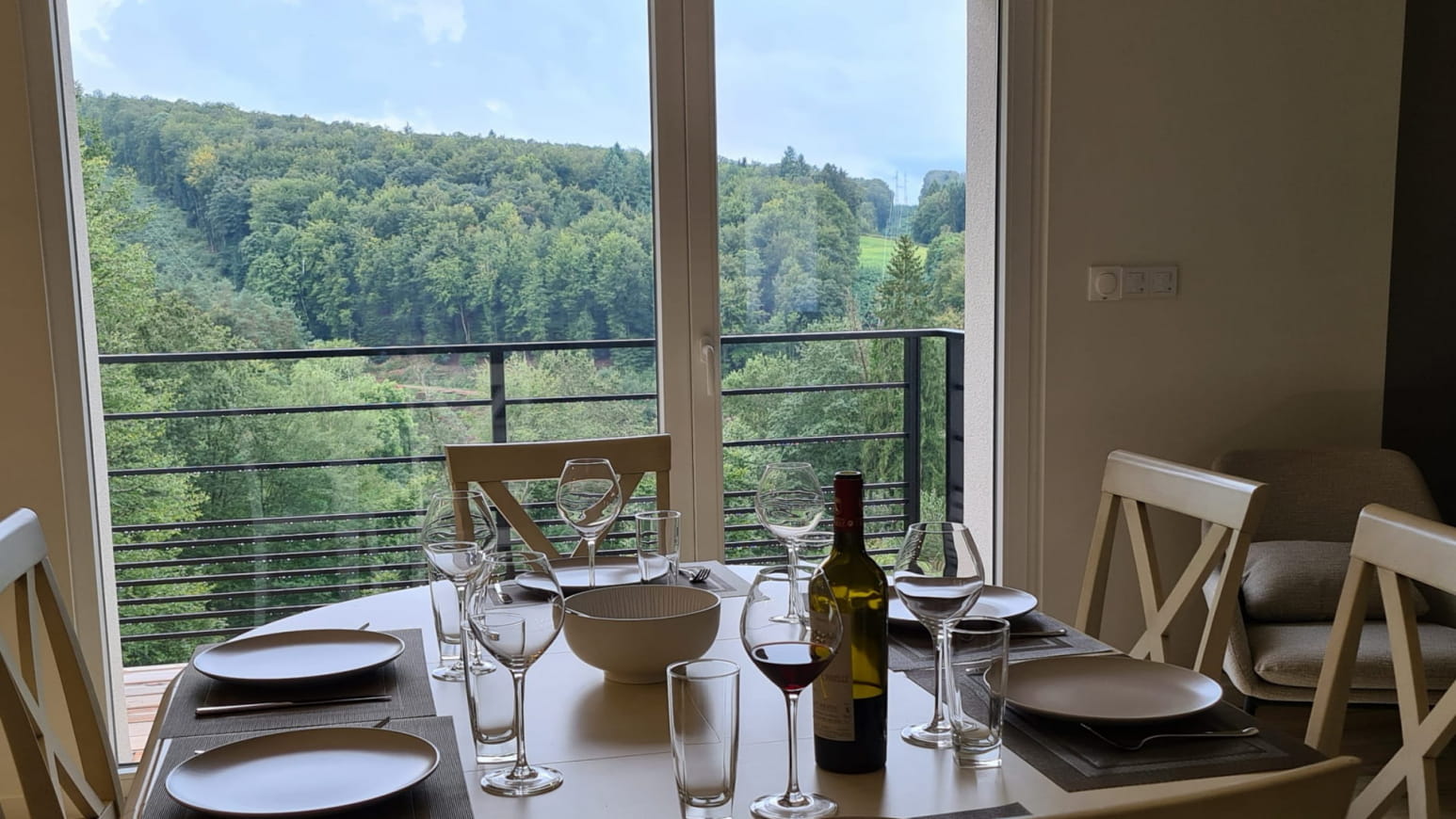 Profitez d’une magnifique vue sur la forêt depuis la terrasse en bois, ainsi que depuis l’espace de vie de 55 m² avec ses baies vitrées orientées plein sud. Pour votre confort, une cuisine moderne est entièrement équipée, avec un coin repas convivial. Un salon cosy avec poêle à pellets et accès à Netflix vous permettra de vous détendre en famille ou entre amis après une journée au grand air.