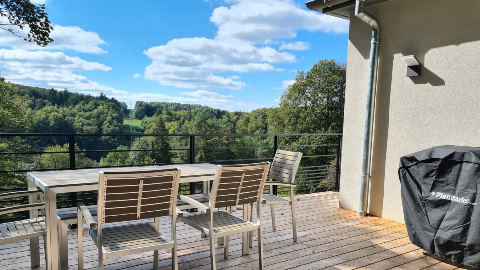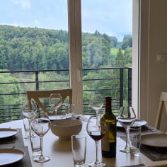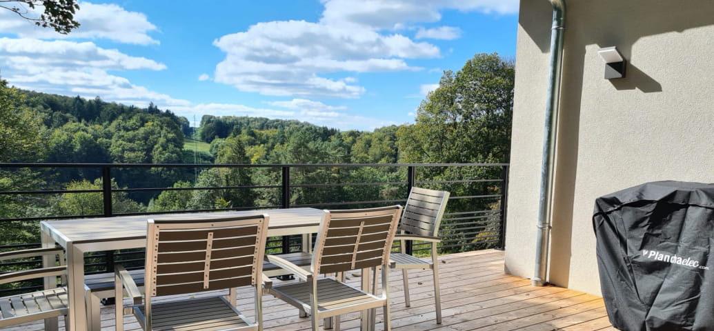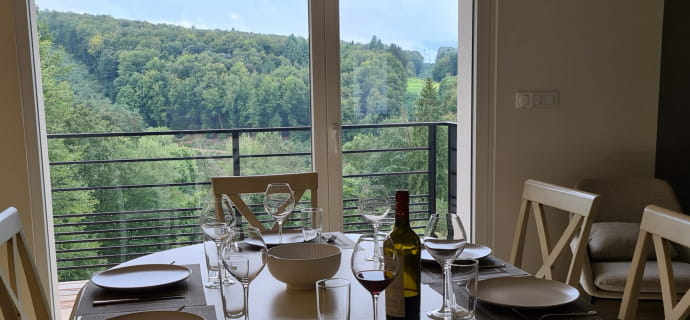 3 chambres indépendantes avec des lits de qualité hôtelière, 2 salles de bain, une grande cuisine équipée, une terrasse avec une vue magnifique et au calme, un salon confortable et chaleureux avec son poêle à pellets.