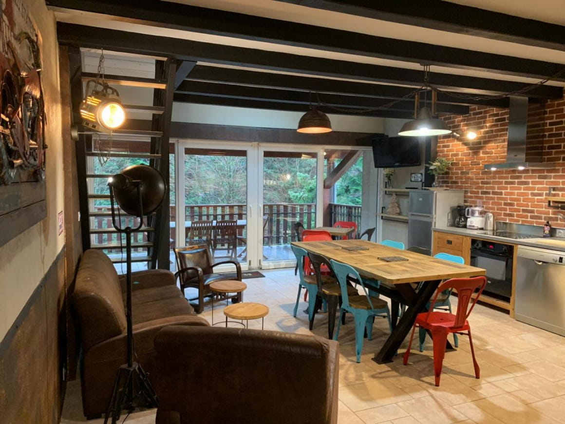 Pour changer de l’esprit chalet en pleine nature, le Haut du Comte vous bercera dans un décor au style industriel. Dès que vous franchirez la porte de l’appartement, vous serez accueilli dans une vaste pièce à vivre avec un coin salon, une salle à manger et une cuisine ouverte. durant les beaux jours, le balcon-terrasse se prête à des petits-déjeuners gourmets ou à des dîners à la belle étoile. Une vue magnifique sur la rivière et la forêt agrémenteront ces agréables moments.