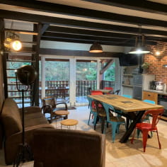 - Salle à manger avec cheminées, canapés et coin cuisine toute équipée