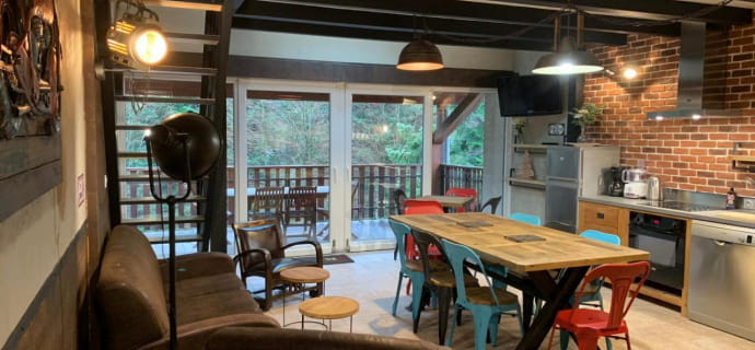 - Décoration au style industriel qui se démarque des autres hébergements du parc
