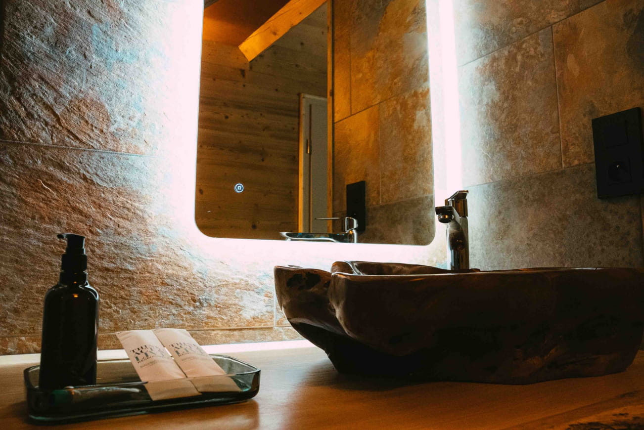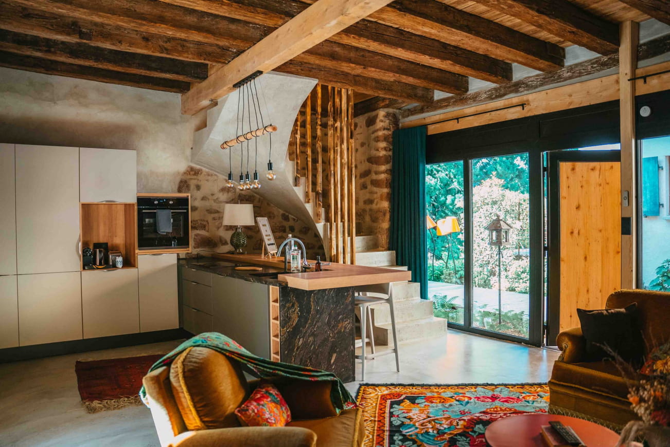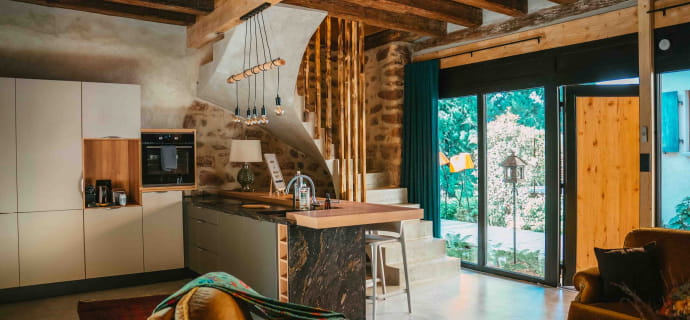 D’une superficie de 80m², le domaine dispose de 2 chambres pouvant accueillir jusqu’à 4 personnes. Vous y trouverez les équipements nécessaires à votre confort, dont 2 salles de bain indépendantes, avec un kit de soins offert en guise de bienvenue ! Une cuisine entièrement équipée sera également mise à votre disposition. Donnant sur une terrasse privative, cette pièce de vie vous invitera à des moments de partage gourmands, tout en appréciant le paysage verdoyant qui entoure le domaine.