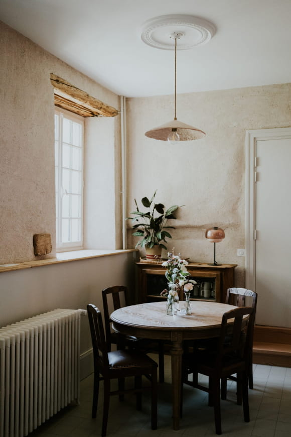 Rénové récemment, tout a ici été conçu pour que vous profitiez de cette retraite paisible. Une partie du jardin vous est dédiée pour savourer vos repas ou apéritifs en plein air. Le pré-verger, avec son terrain de pétanque partagé avec les propriétaires, complète cette expérience conviviale.