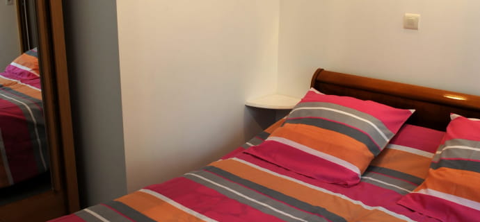 Rez-de-chaussée : cuisine équipée, séjour donnant sur la rivière et sur le magnifique parc du Château Saint Louis, wc. A l’étage : 2 chambres doubles, une chambre simple, salle d’eau, wc.