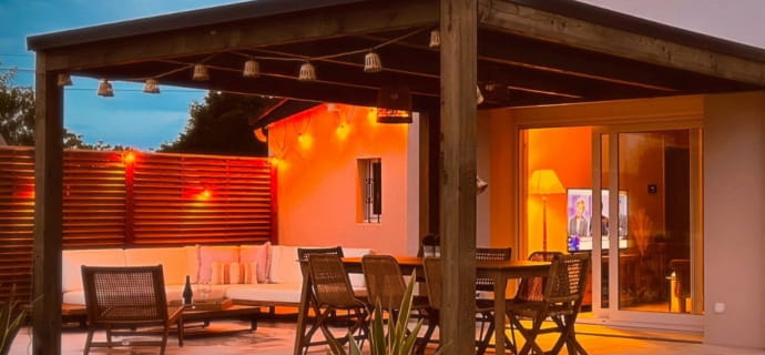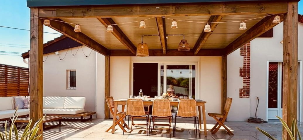 Terrasse couverte avec vue dégagée pour vos moments entre amis.