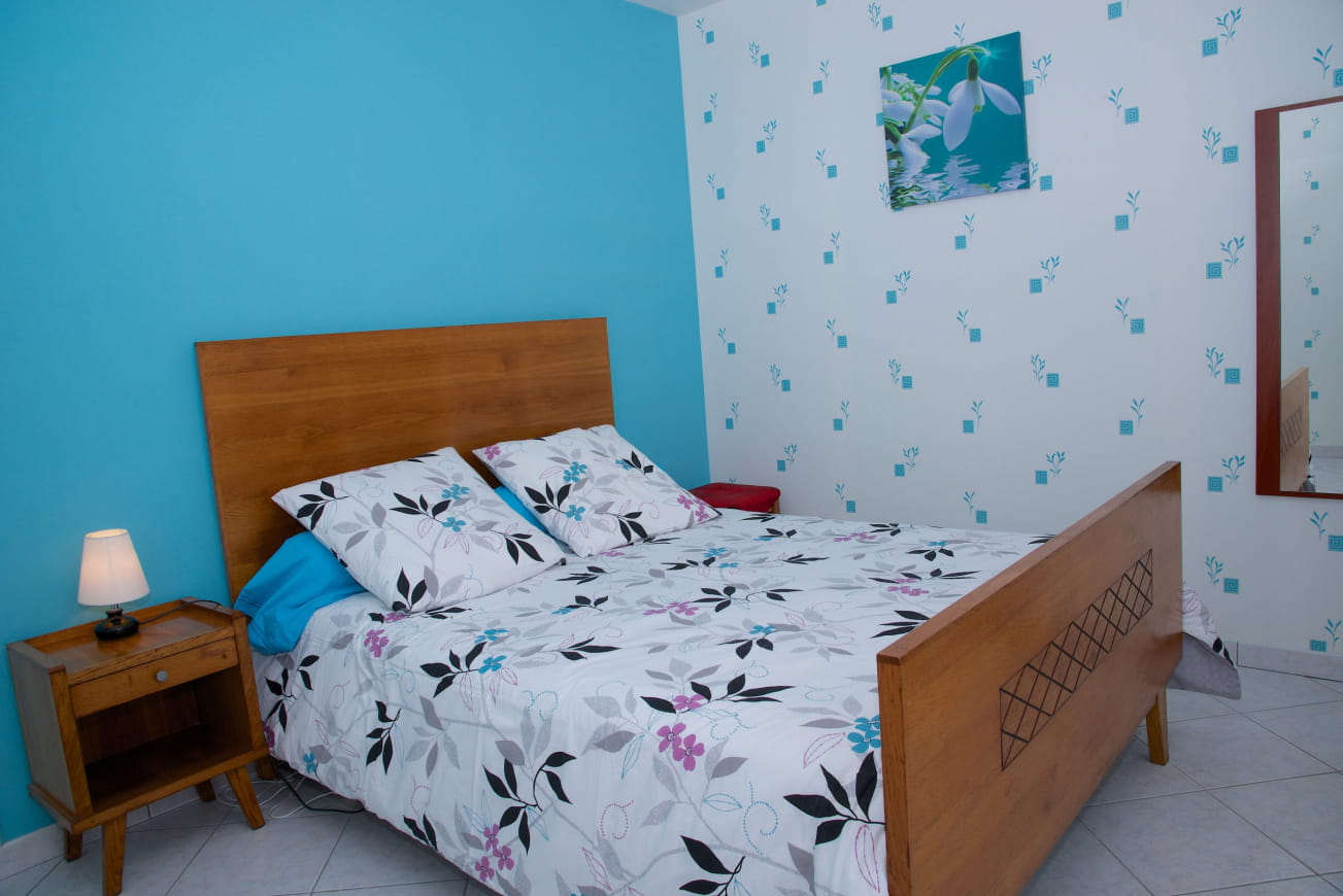 Au rez-de-chaussée : salle à manger, salon, coin cuisine équipé, salle d’eau, WC séparé, une chambre (1 lit double), le tout accessible pour personnes à mobilité réduite (moteur). A l’étage : deux chambres (1 lit double), une chambre (2 lits simples) salle d’eau, wc.