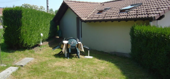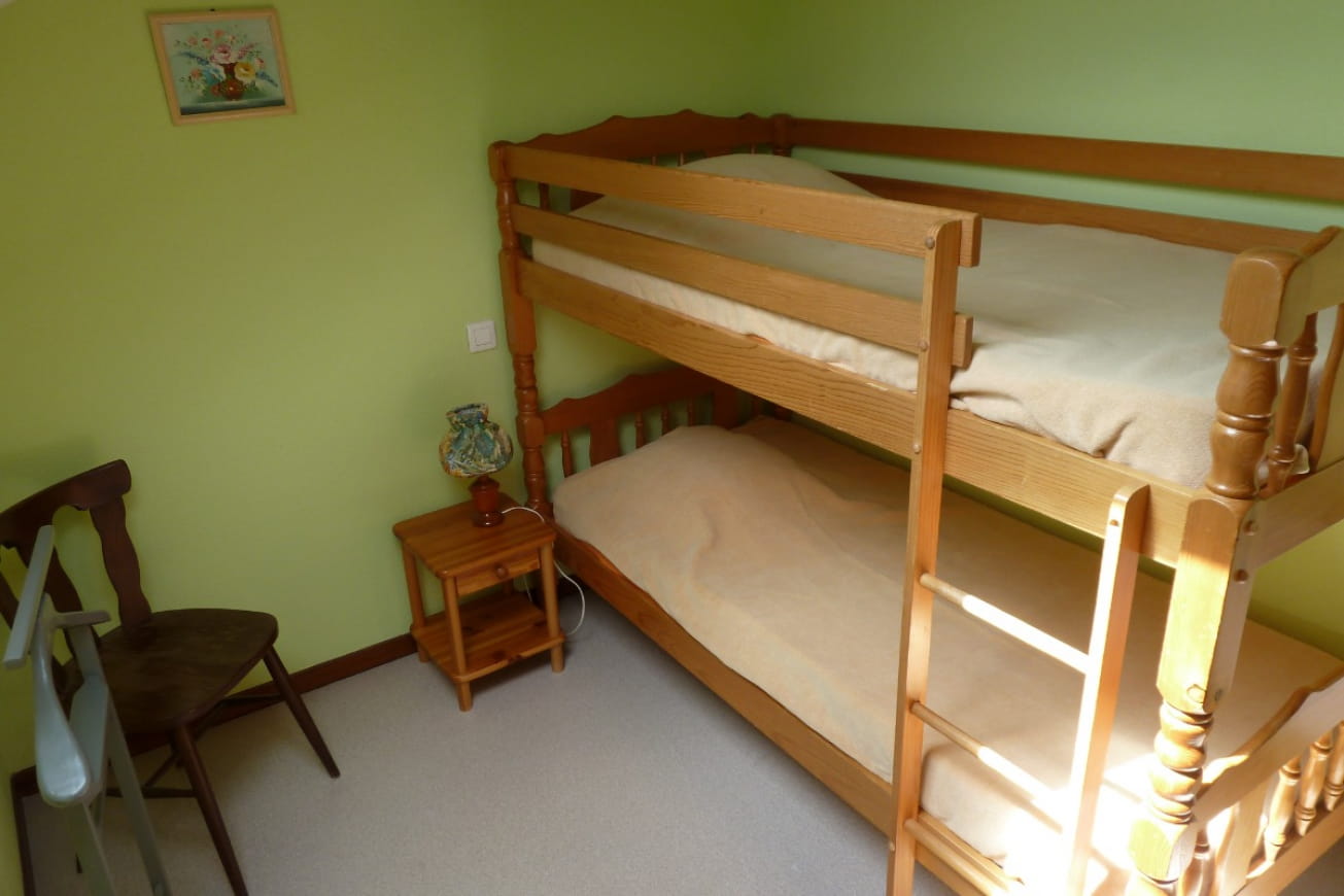 1/2 niveau : lave-linge. Deux chambres indépendantes avec penderies dont une avec lit 140X190 cm et la seconde avec deux lits superposés 90X190 cm et lit bébé. Salle de bains avec baignoire douche, lavabo, sèche cheveux, sèche serviettes. WC indépendant. Accès jardin extérieur avec salon de jardin, transats et barbecue.
