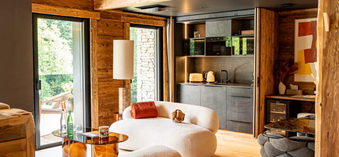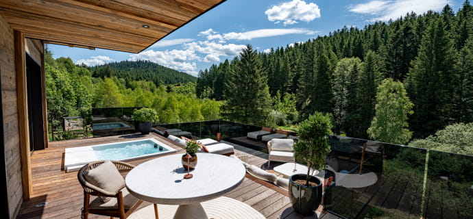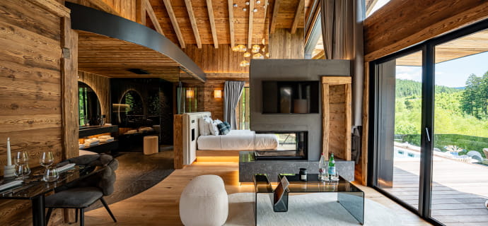 - Chalet privé avec terrasse de 50m2, spa privé, douche sensorielle, baignoire ilot, cheminée panoramique