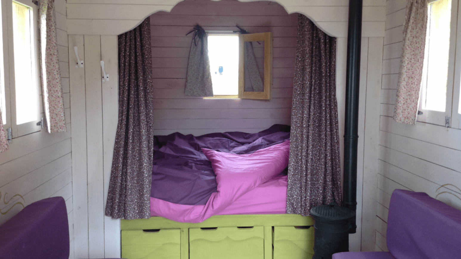 Ne vous étonnez pas si la roulotte a été principalement aménagée pour le couchage. L’objectif de votre séjour est de vous rapprocher de Mère Nature, mais également de vous rapprocher l’un de l’autre. Ainsi, vous dormirez au son de la campagne, loin du bruit et de l’agitation, et vous vous réveillerez au doux son des oiseaux.