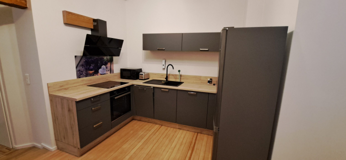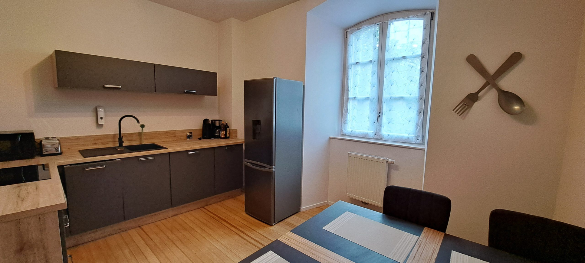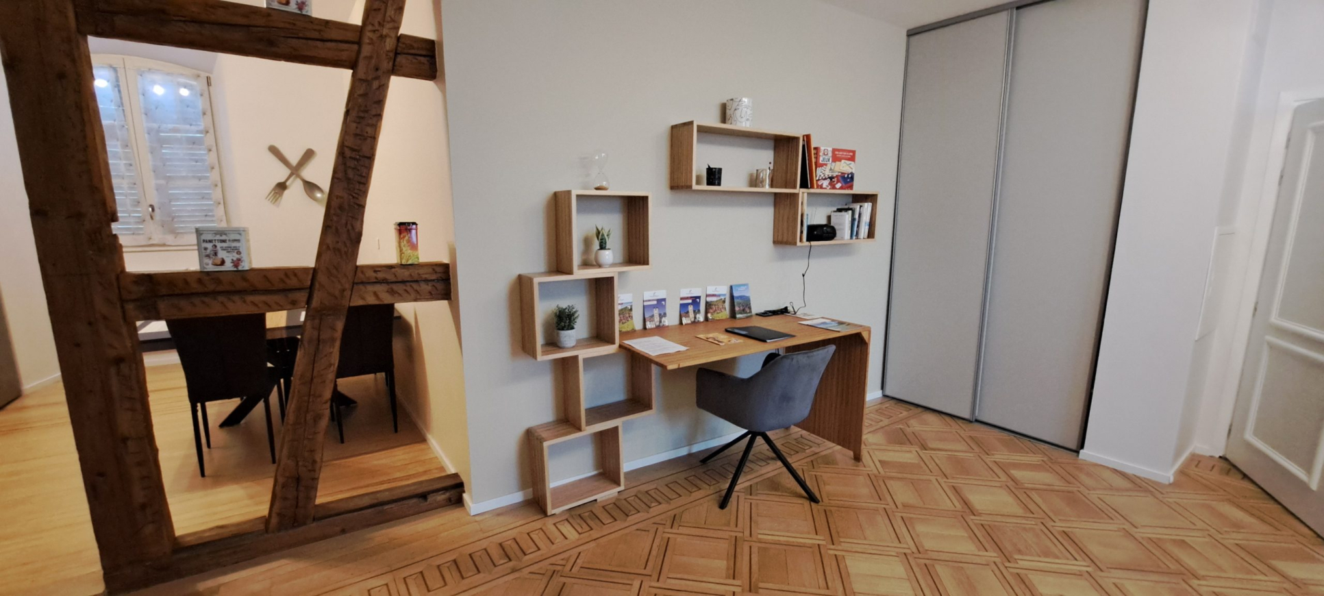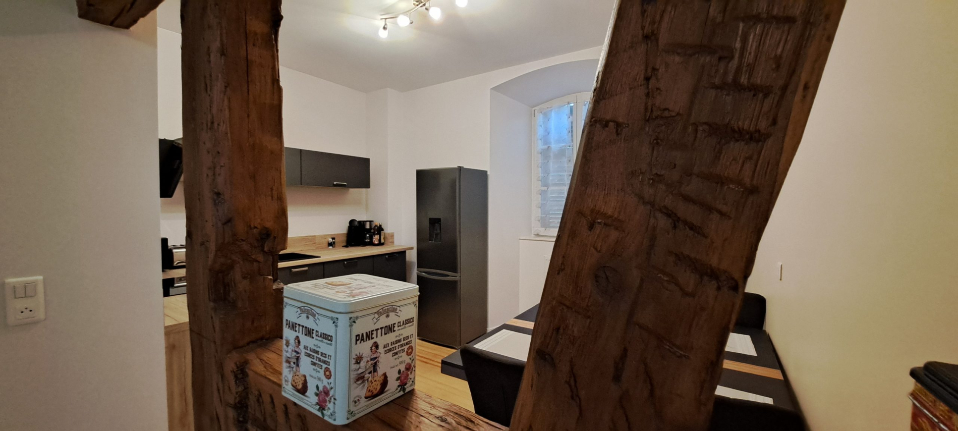 Aménagé au premier étage d’une élégante maison de maître viticole vieille de 250 ans, cet appartement de 55 m² séduit par ses volumes généreux, ses poutres apparentes et sa hauteur sous plafond de 3 mètres. Entièrement rénové et équipé, il allie le cachet de l’ancien au confort moderne, pour un séjour en toute sérénité.