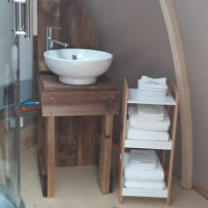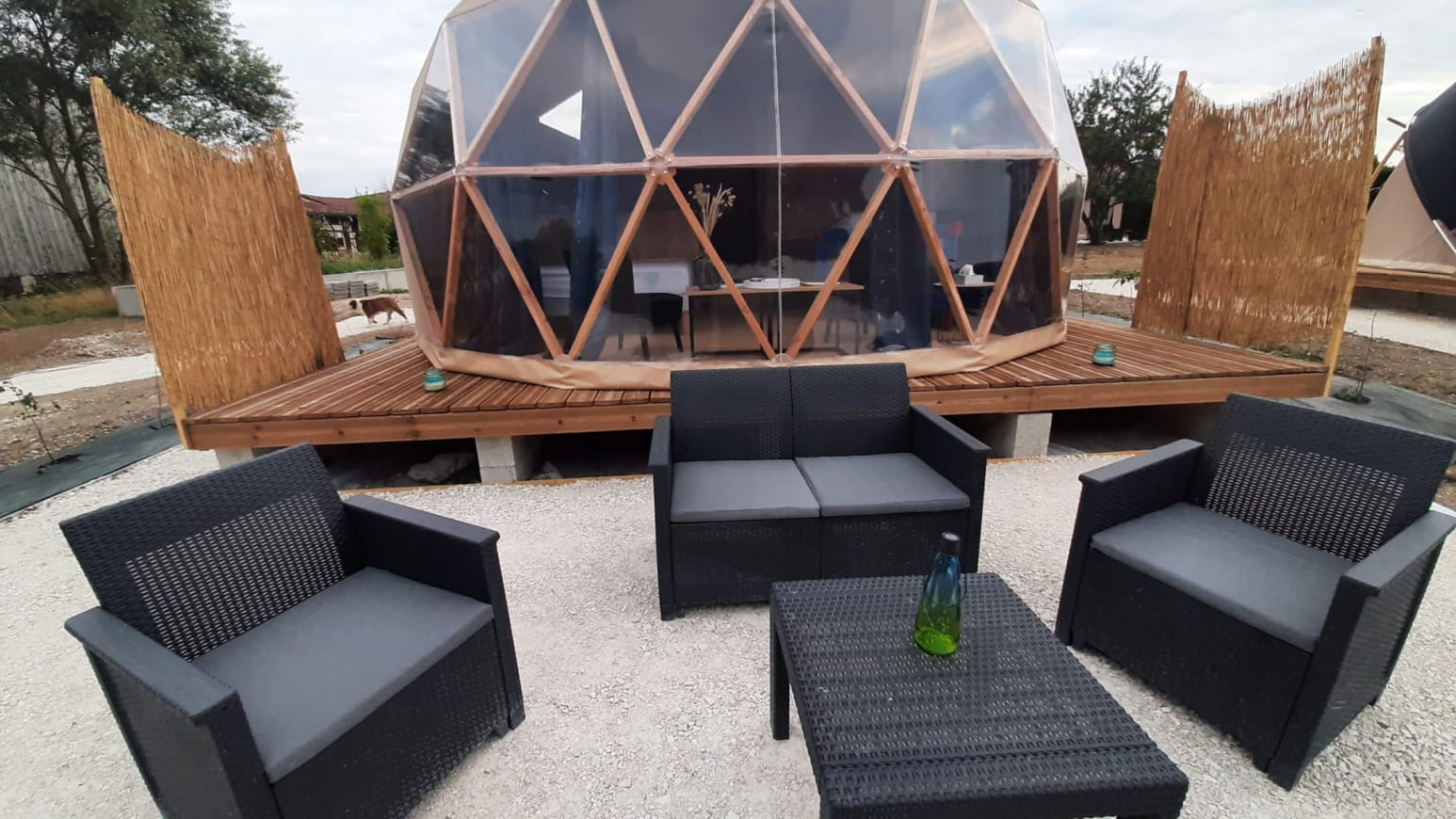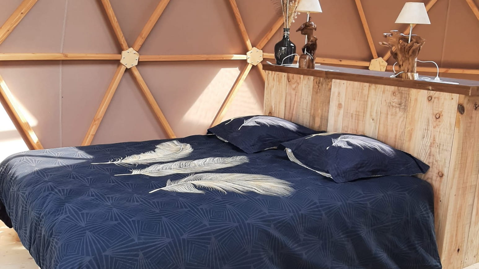 Afin d’assurer votre confort, À l’Aube des Sens a équipé son dôme de tout le nécessaire. En plus du lit double, vous disposerez notamment d’un canapé-lit pour 2 personnes, avec les draps et linges de toilettes inclus. La bulle abrite également une douche, ainsi que des toilettes séparées. Très pratique pour les vacances à plusieurs !