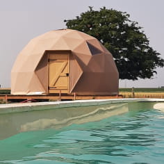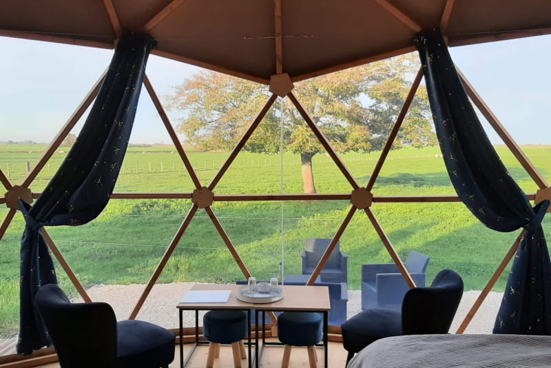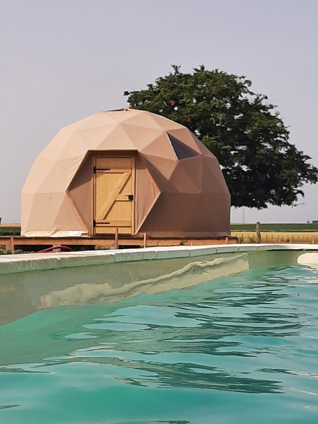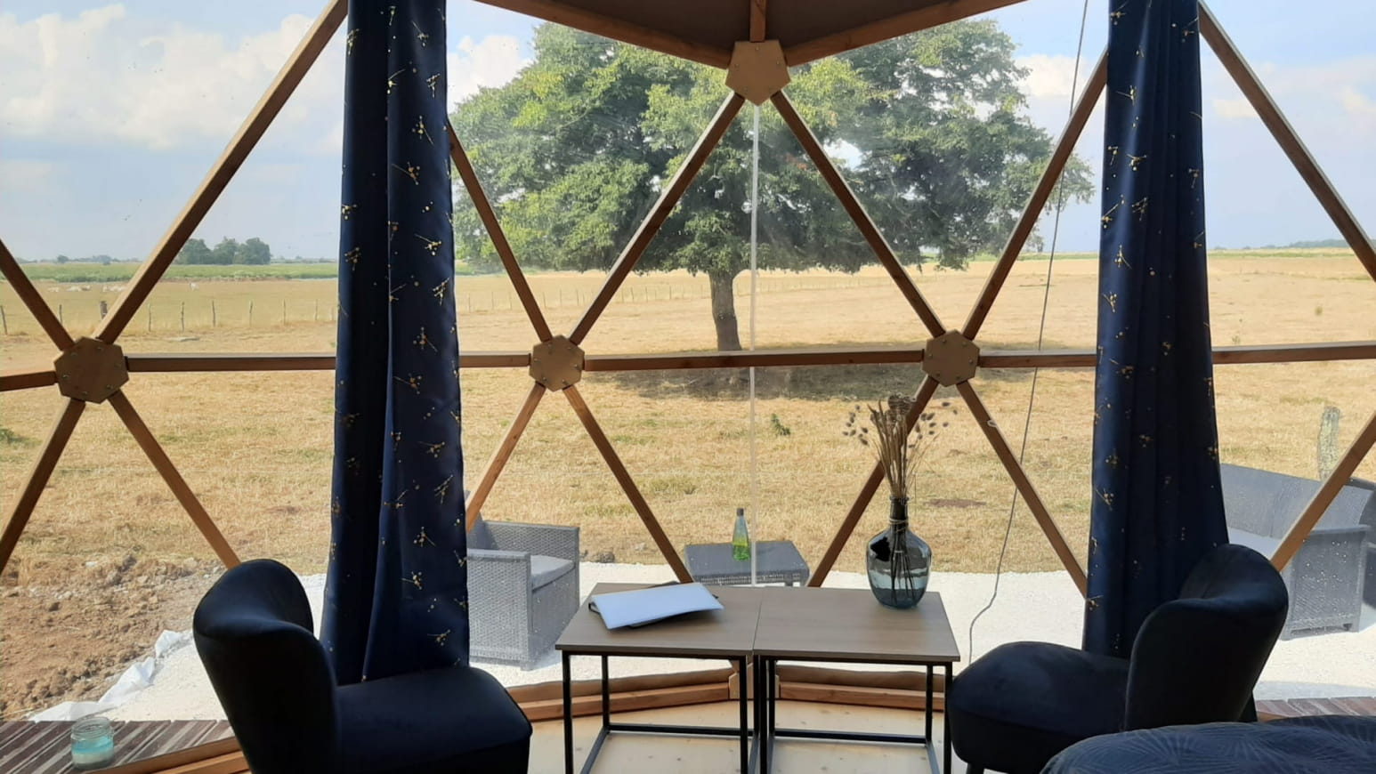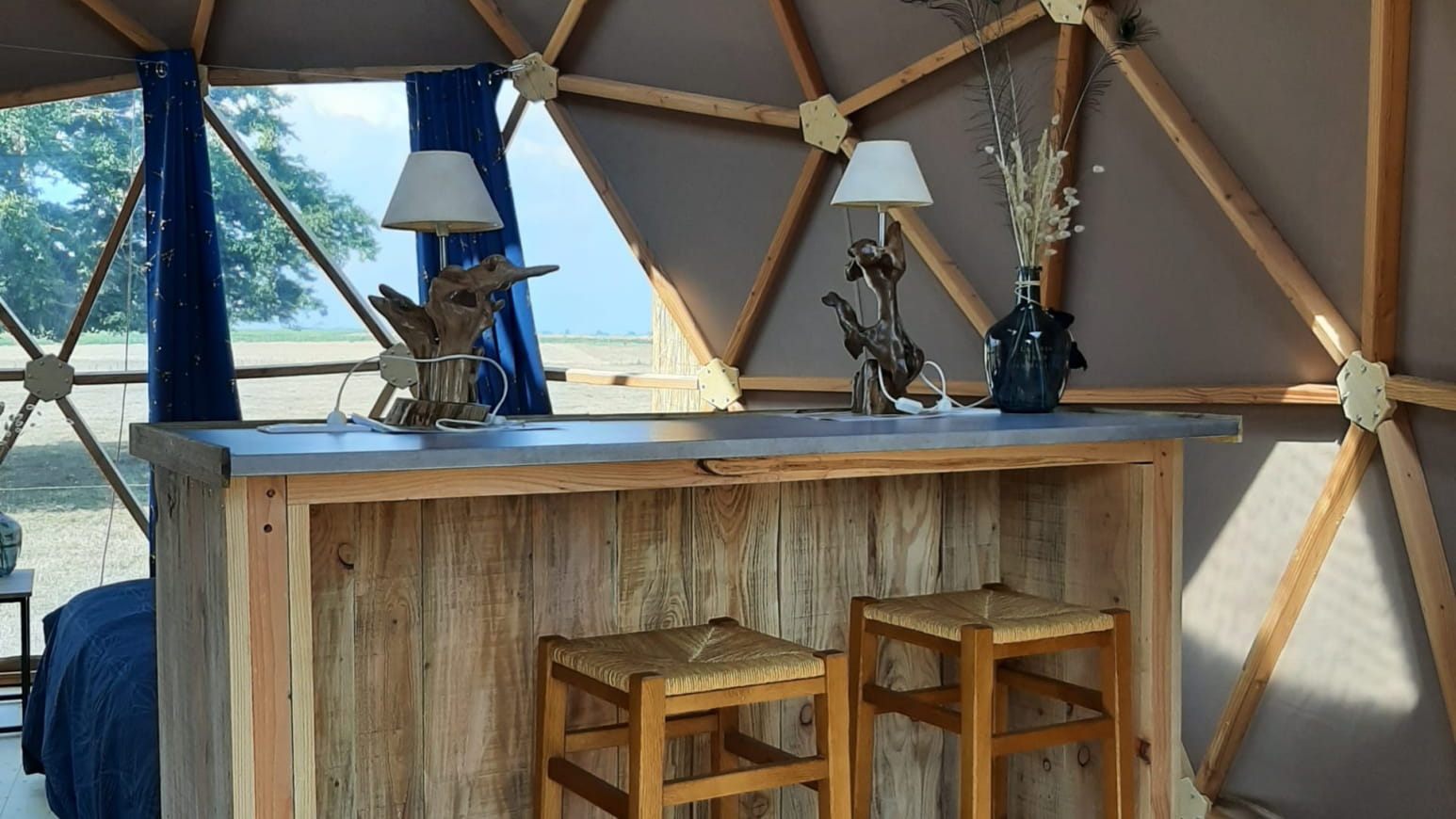 Le Dôme Céleste vous accueille dans un endroit tranquille et reposant, à seulement 10 minutes du Lac du Der. Conçu en Alsace, avec du bois Vosgien, ce dôme géodésique vous offre une expérience de séjour bien particulière. Appréciez le ciel depuis votre lit queen size, et profitez d’une vue verdoyante depuis la terrasse privative. Loin des bruits de la ville, mais proche de l’essentiel, vous aurez l’occasion de vous retrouver en toute sérénité.