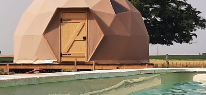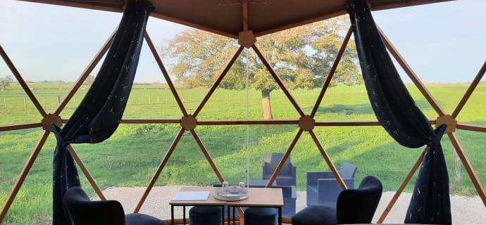 En couple, en famille ou entre amis, partagez des moments d’évasion uniques À l’Aube des Sens ! Le domaine vous propose son Dôme Céleste pour un séjour insolite dans la campagne champenoise. Une bulle douillette et spacieuse pouvant accueillir jusqu’à 4 personnes. Idéale pour se ressourcer ensemble au plus près de la nature !