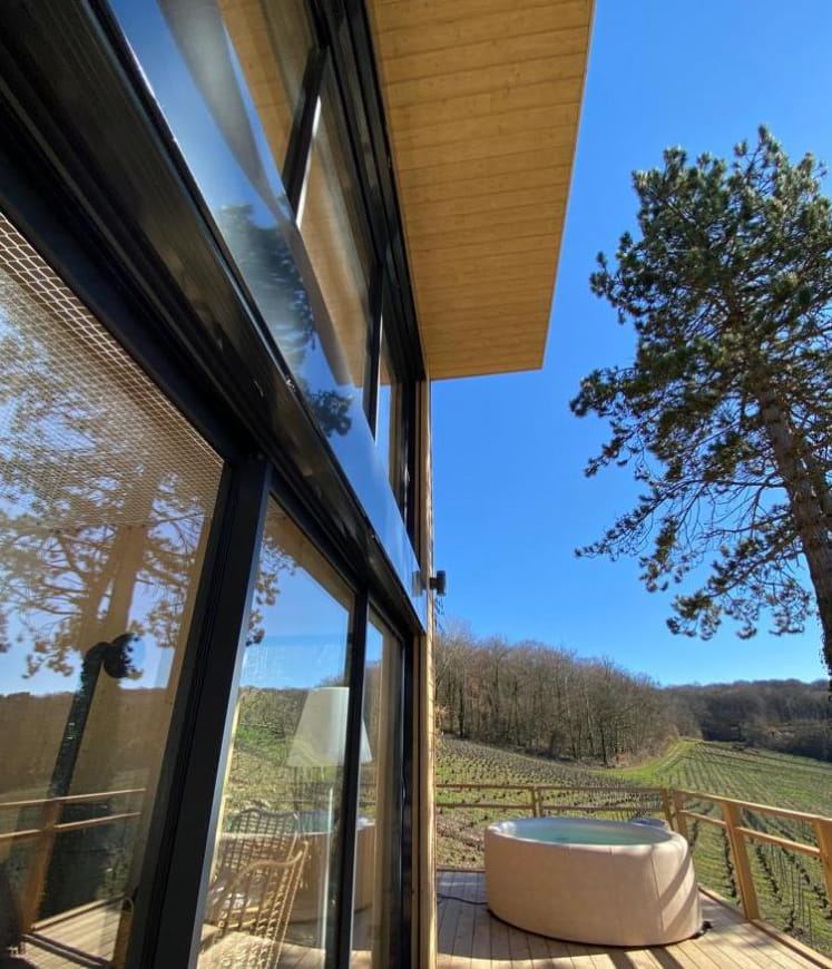 Bien-être à l’honneur, le Chalet Cormoyeux dispose également d’espaces dédiés à la détente et à la relaxation. Installez-vous dans le hamac, et admirez tout simplement le paysage ! Rejoignez également la terrasse, et laissez-vous séduire par le jacuzzi silencieux ! Entre vignes et vallée à perte de vue, un magnifique panorama vous sera offert.