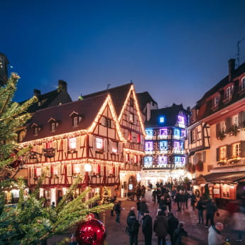 A l’occasion des fêtes de fin d’année, la ville se pare, cette fois, d’une atmosphère magique et scintillante. Les guirlandes lumineuses sur les maisons, les sapins et les chalets des marchés de Noël égayent Colmar et lui donnent des airs de conte de fées.